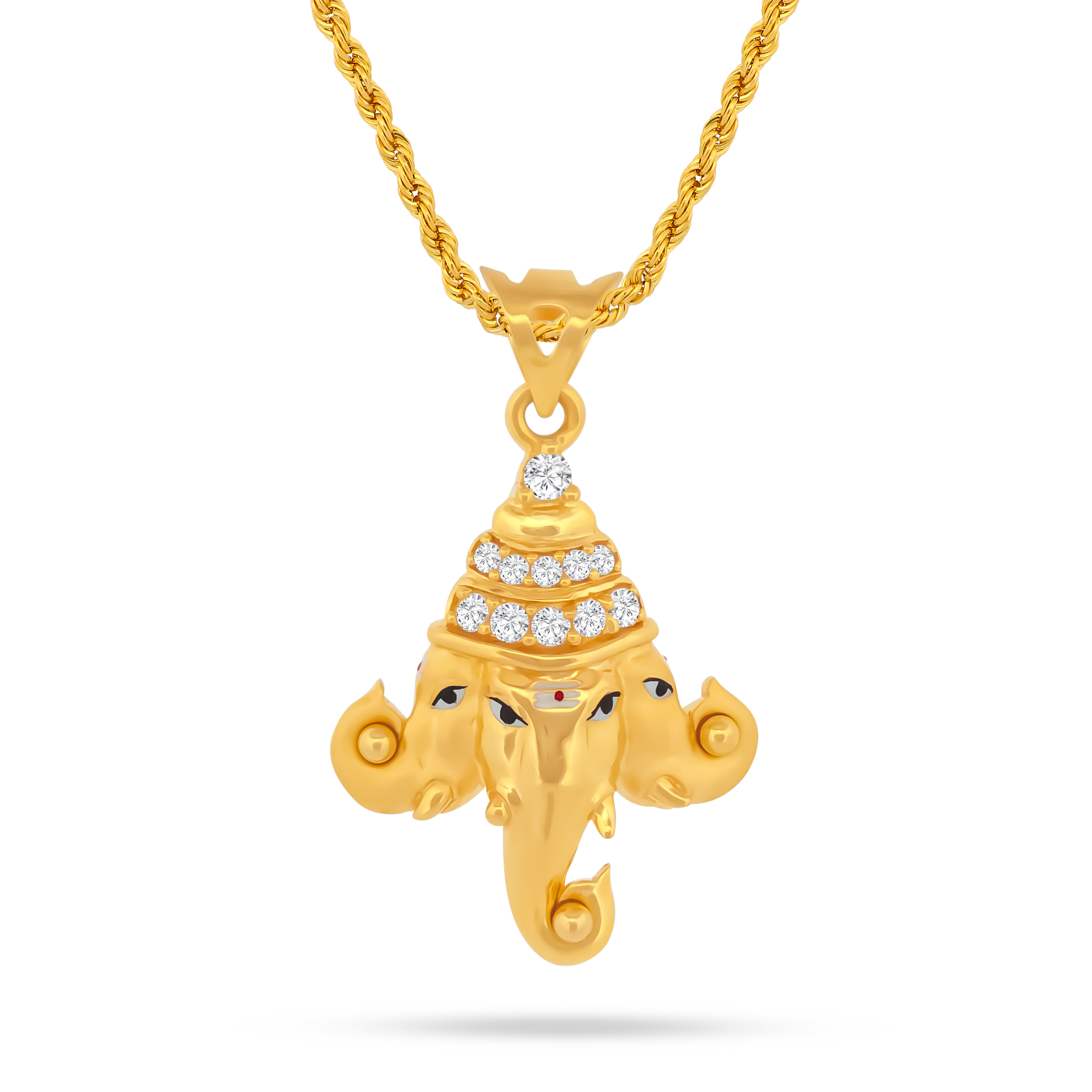 This beautifully crafted gold pendant features Lord Ganesha, the remover of obstacles, in an elegant and artistic design.