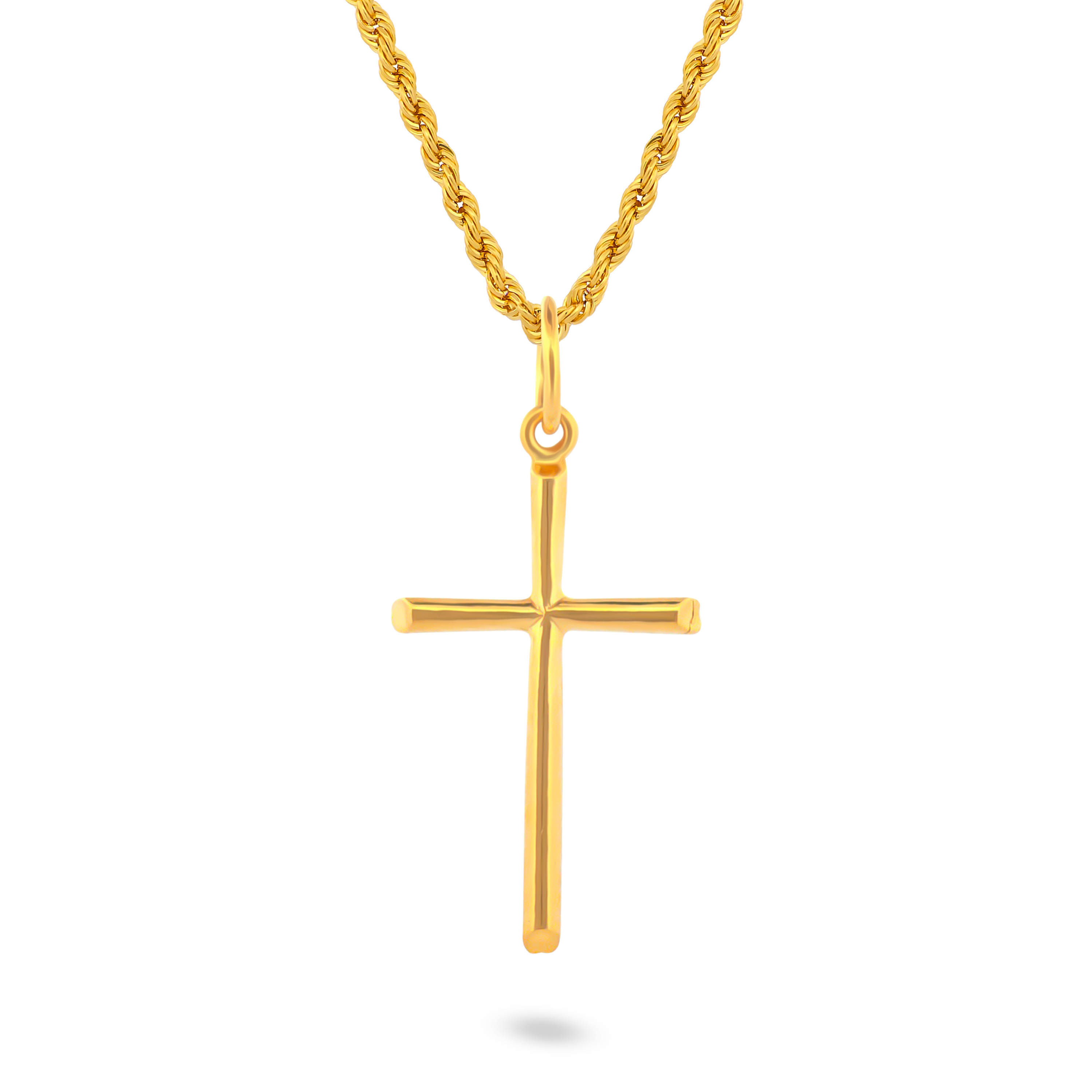 This beautifully crafted gold cross pendant necklace showcases a sleek and minimalistic design, symbolizing faith and elegance.