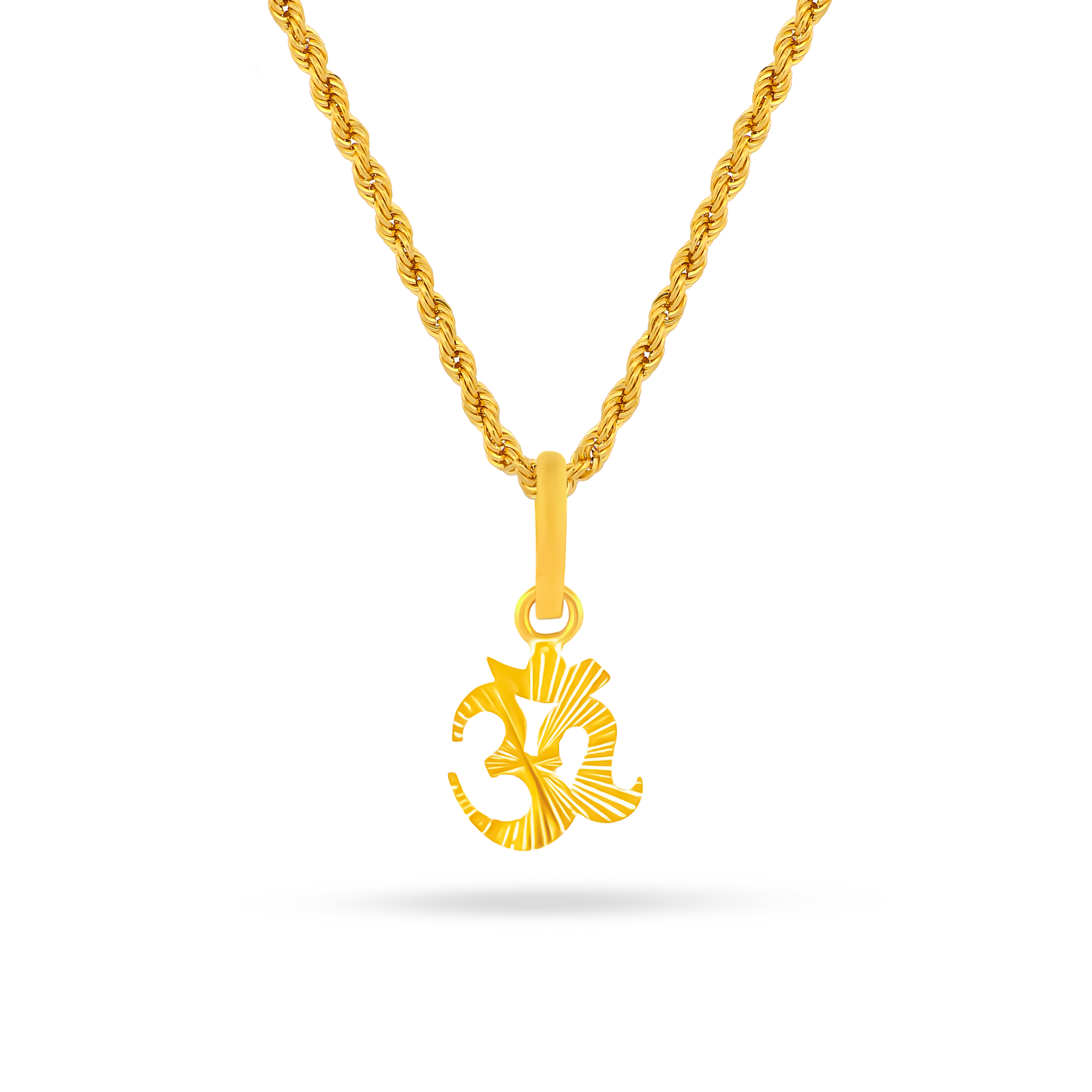 A beautifully designed gold pendant featuring the sacred "Om" symbol, crafted with fine detailing and a radiant finish.
