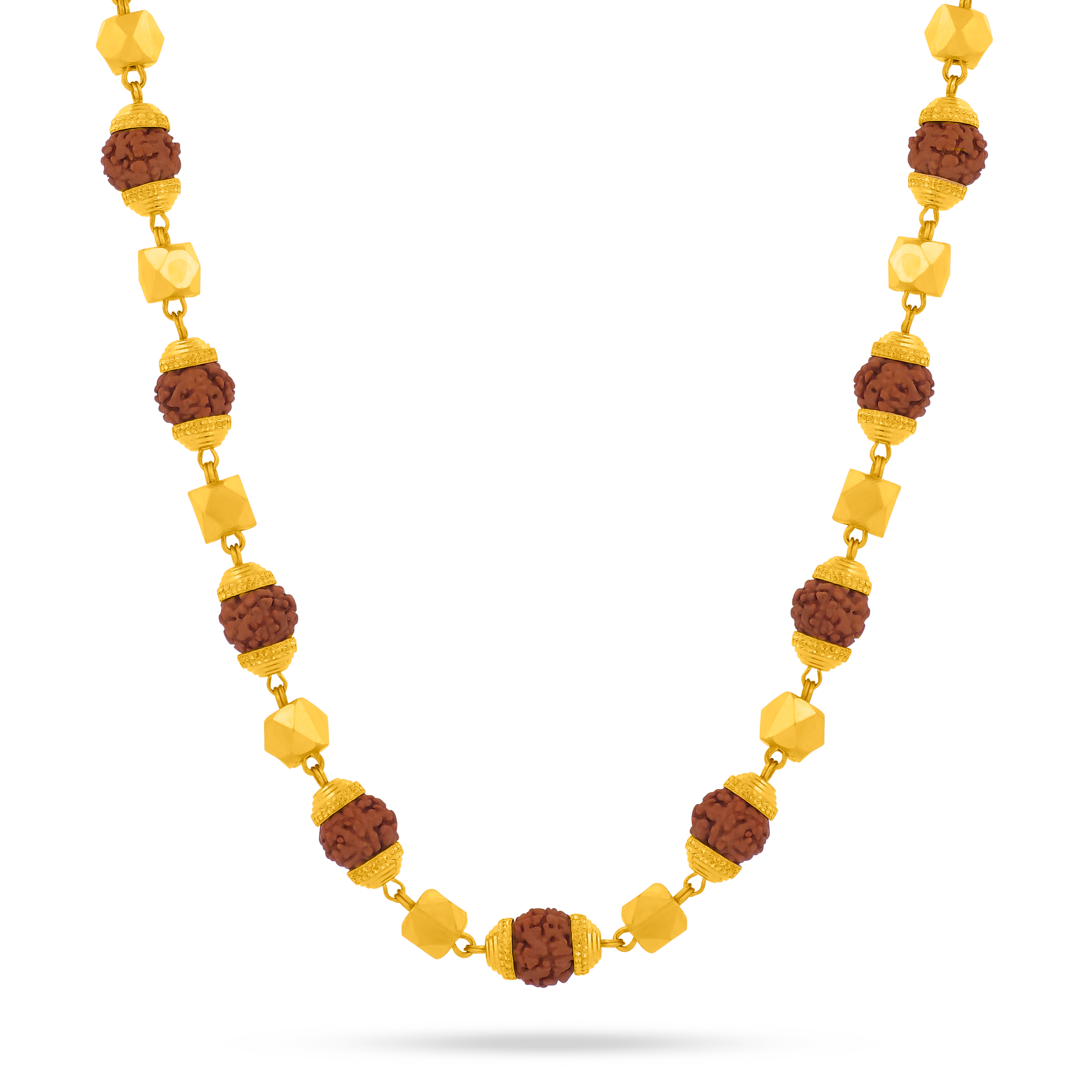 This exquisite Rudraksha bead chain beautifully blends spiritual symbolism with luxurious craftsmanship. Weighing a total of 37.3 grams, it features 34.1 grams of pure 22K gold paired with 3.2 grams of natural Rudraksha beads.