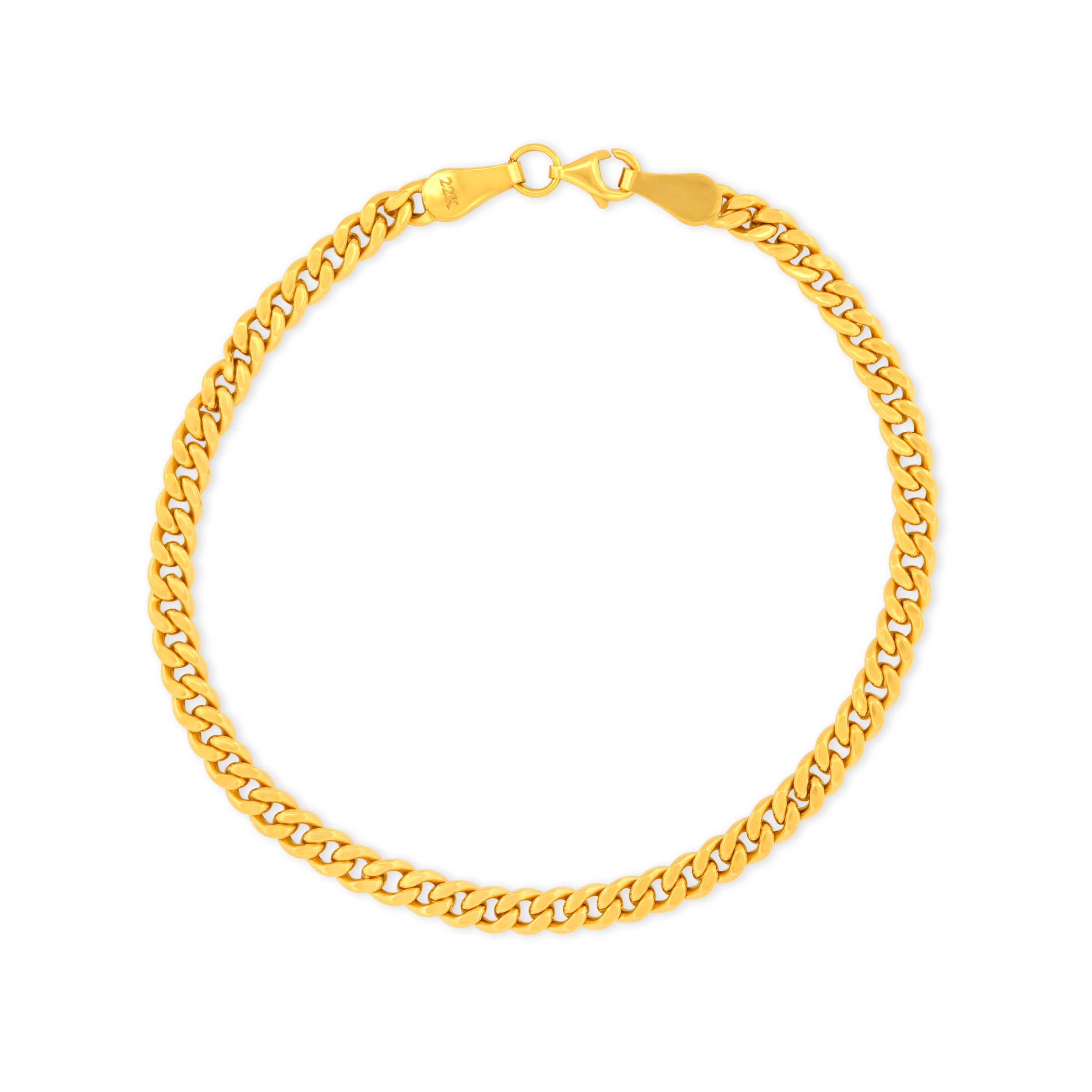 22K (916) gold hollow chain bracelet with a sleek 4.0 mm width and 7.75-inch length, featuring a high-polish mirror finish for a radiant look. Lightweight at just 4.2 grams, it offers timeless elegance perfect for daily wear or special occasions.
