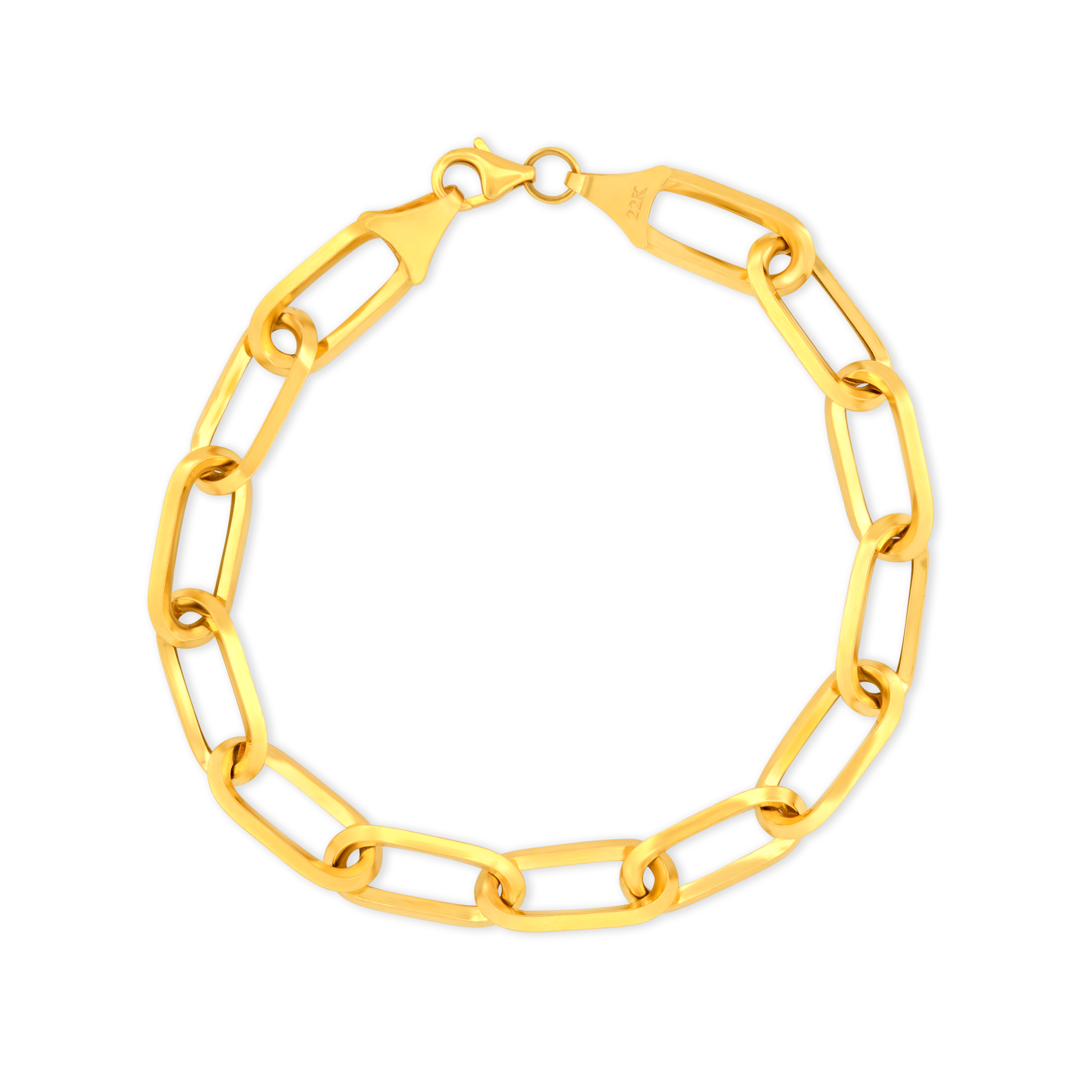 22K (916) gold hollow chain bracelet with a sleek 7.6 mm width and 7.25-inch length, featuring a high-polish mirror finish for a radiant look. Lightweight at just 6.45 grams, it offers timeless elegance perfect for daily wear or special occasions.