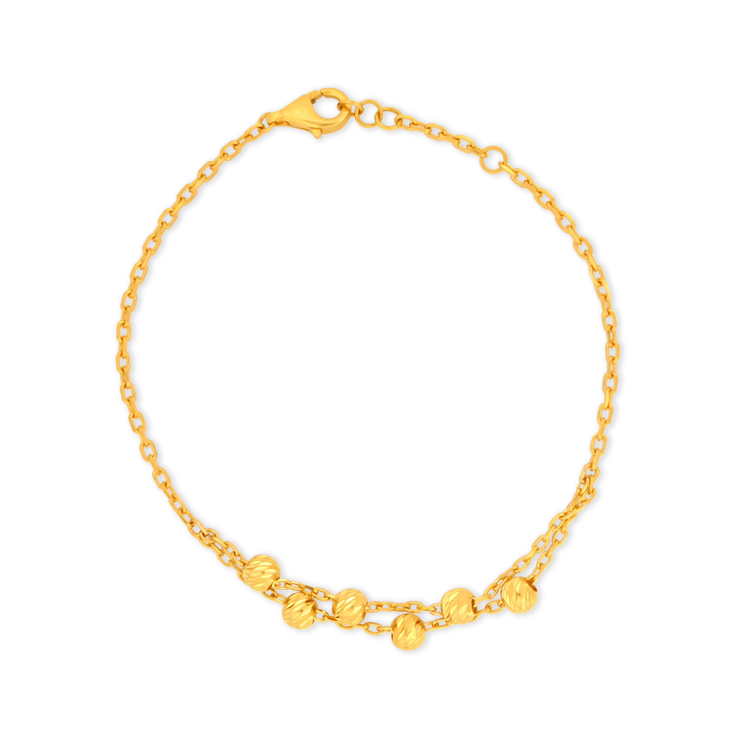 This elegant and lightweight gold bracelet features a delicate chain adorned with a series of finely textured gold beads.