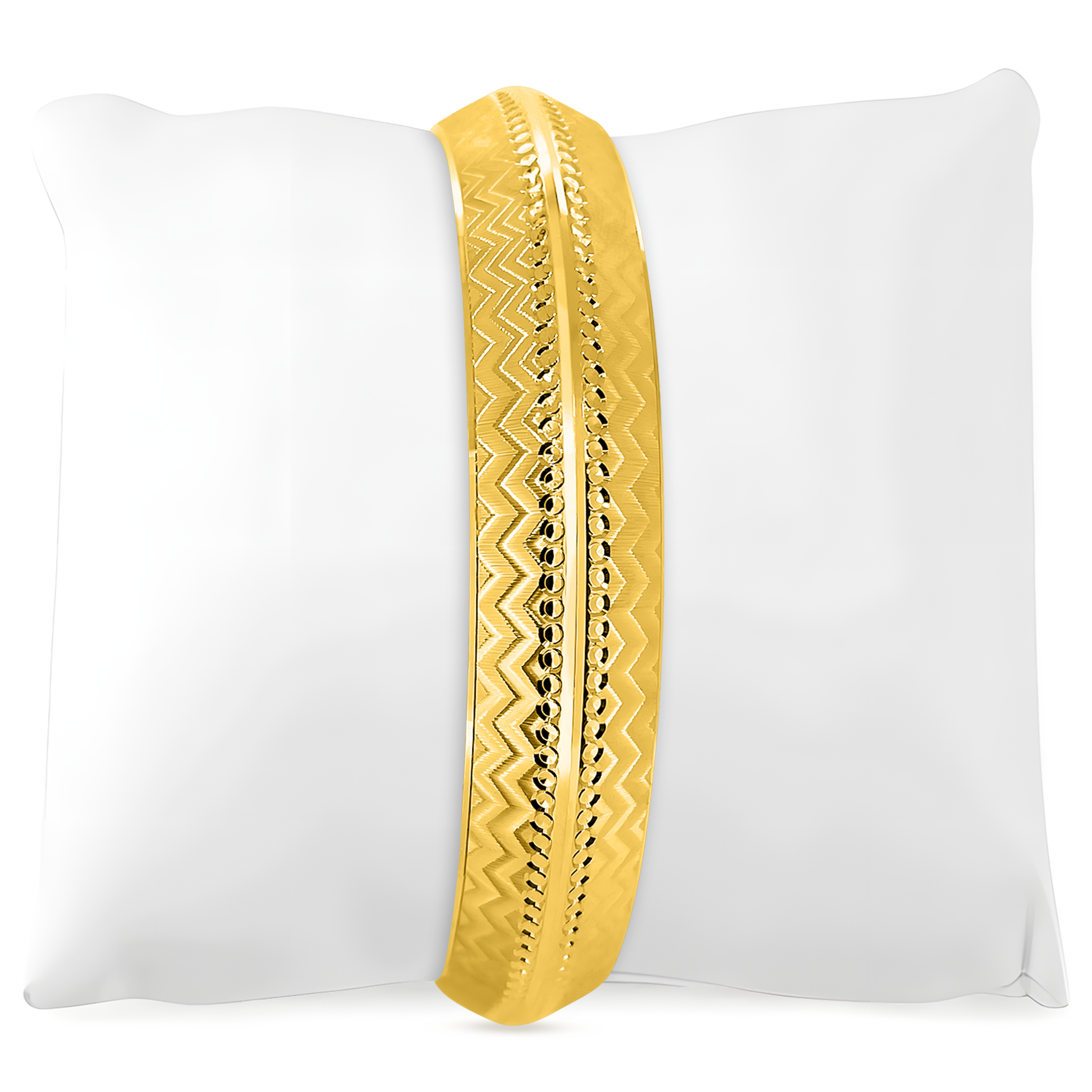 A stylish 22K gold kada featuring a striking zig-zag texture, beautifully complemented with dot accents, creating a unique and contemporary design with timeless appeal.