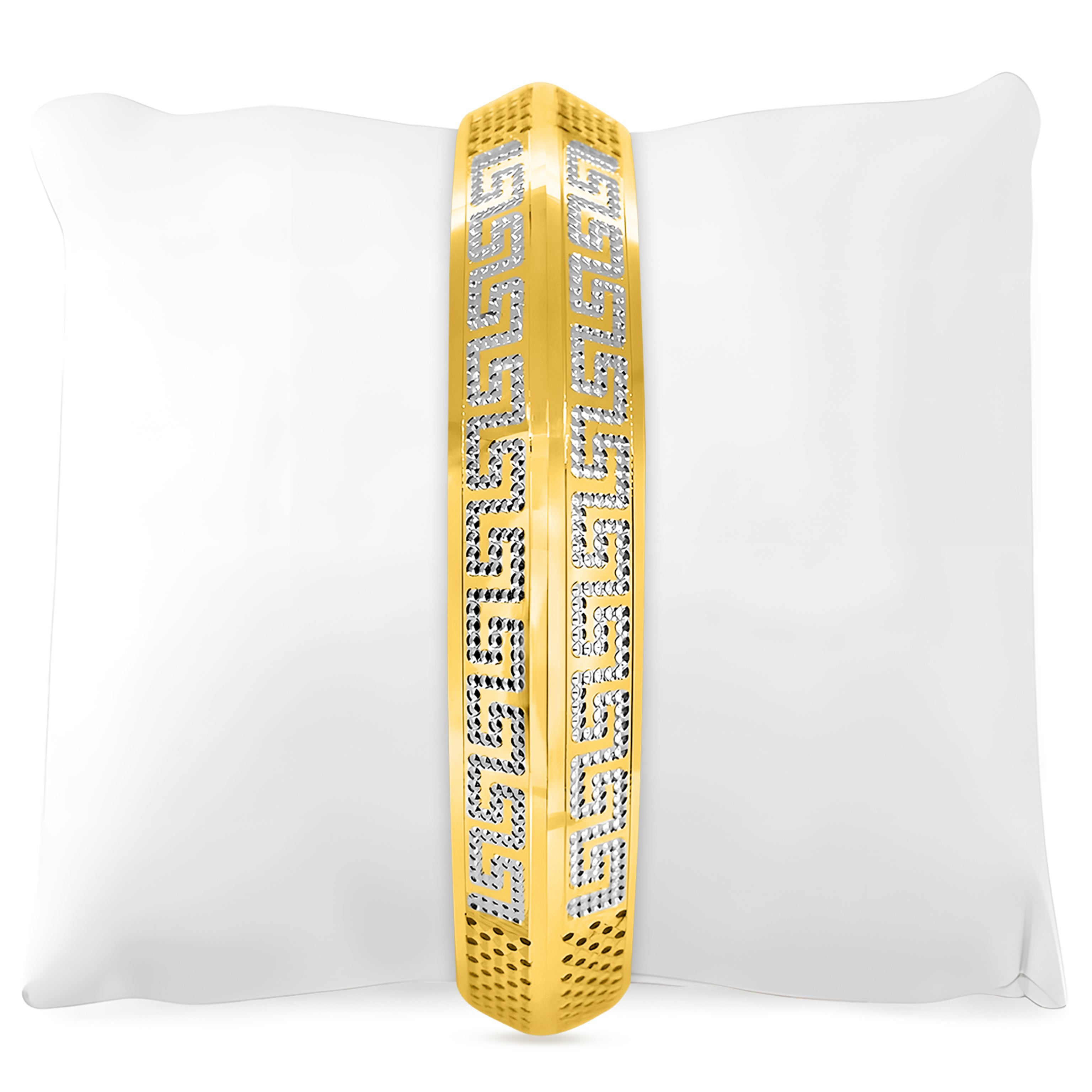 This uniquely designed kada features two sections with a delicate dot pattern and two sections with an intricate cross see-through design.