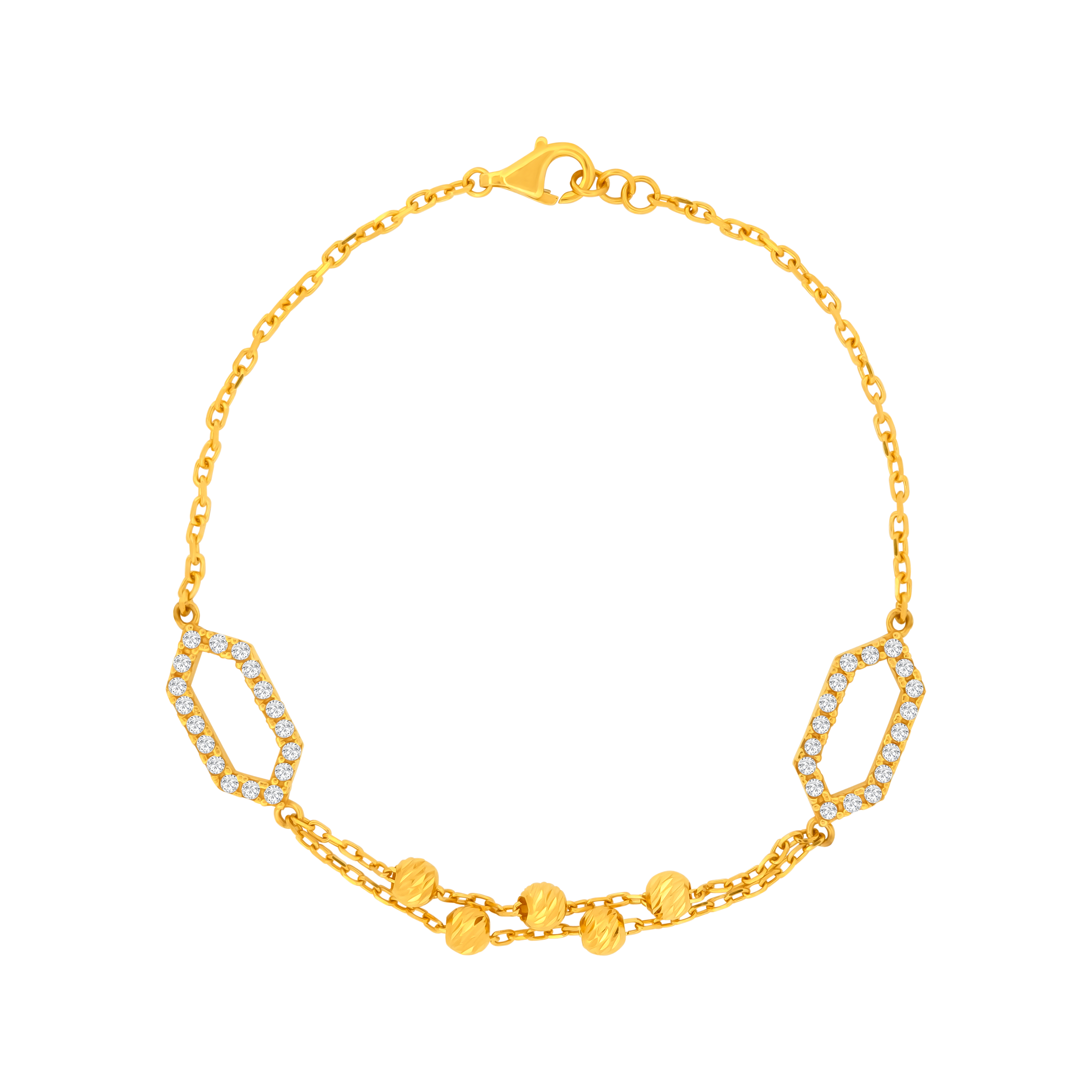 The dual-layered chain at the center is enhanced with textured gold beads, adding a touch of sophistication and charm.