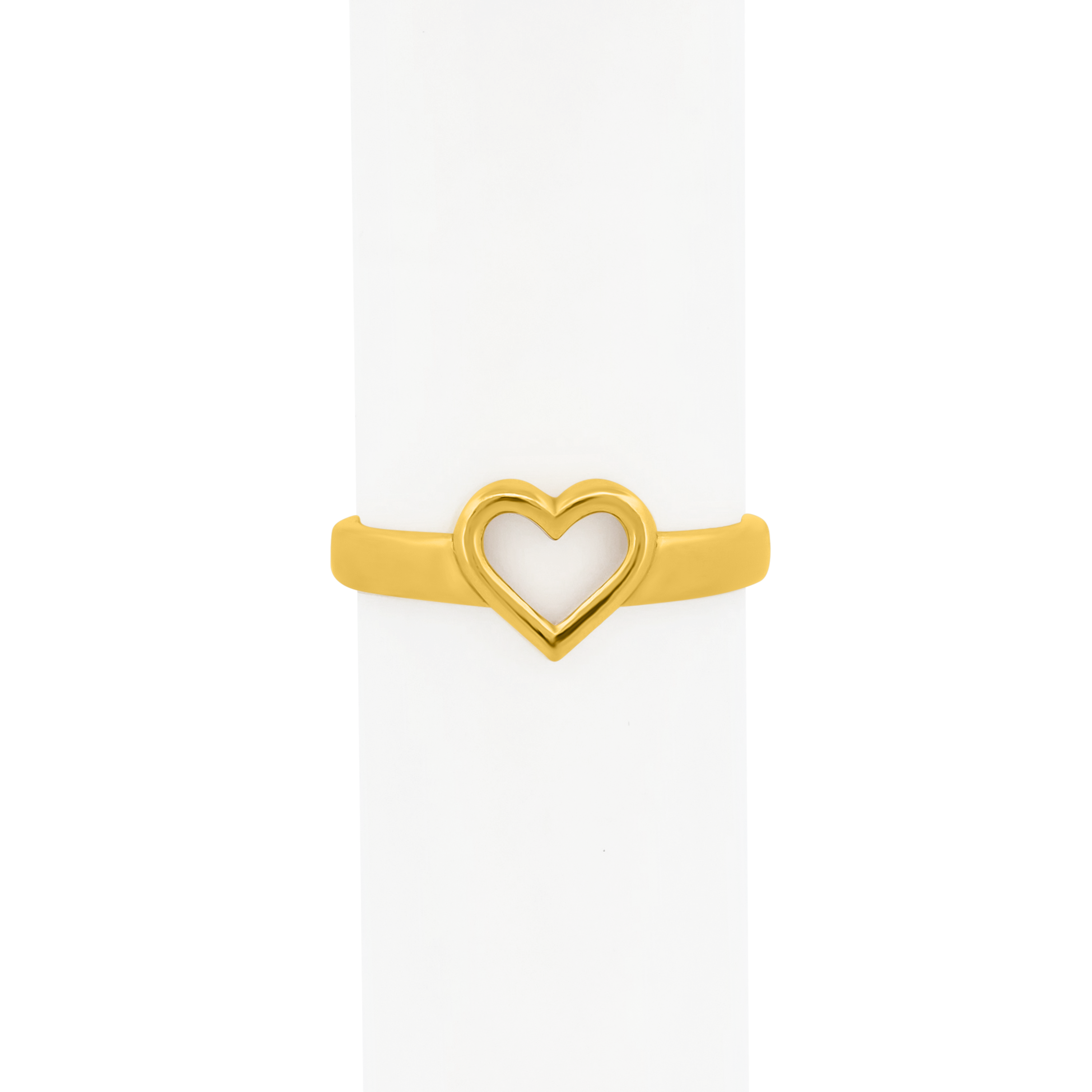 This delicate 22K gold ring features a beautifully crafted open-heart centerpiece, symbolizing love and elegance