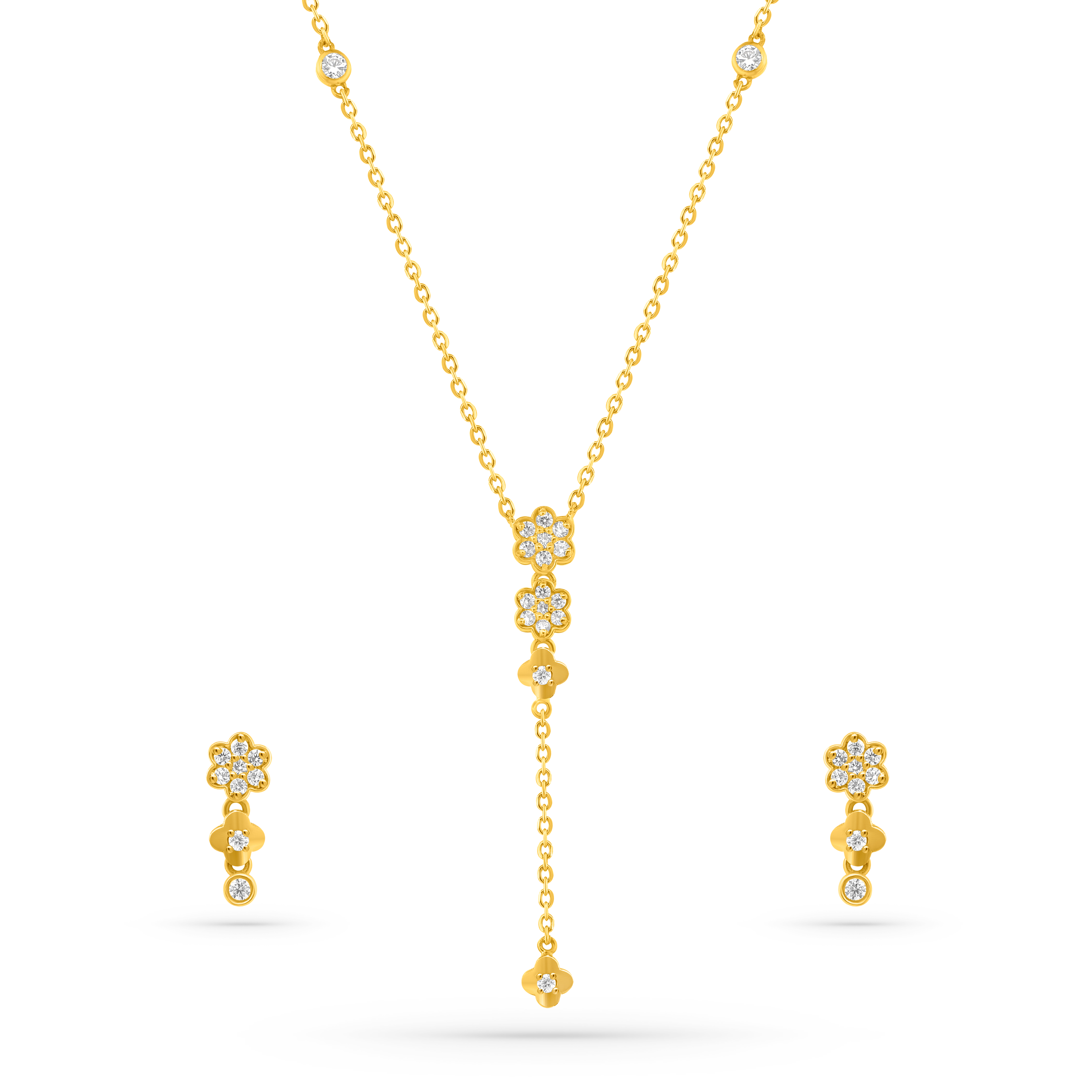 22K (916) gold necklace and earring set featuring exquisite craftsmanship and a radiant finish, combining timeless charm with modern elegance—perfect for festive occasions and special celebrations.