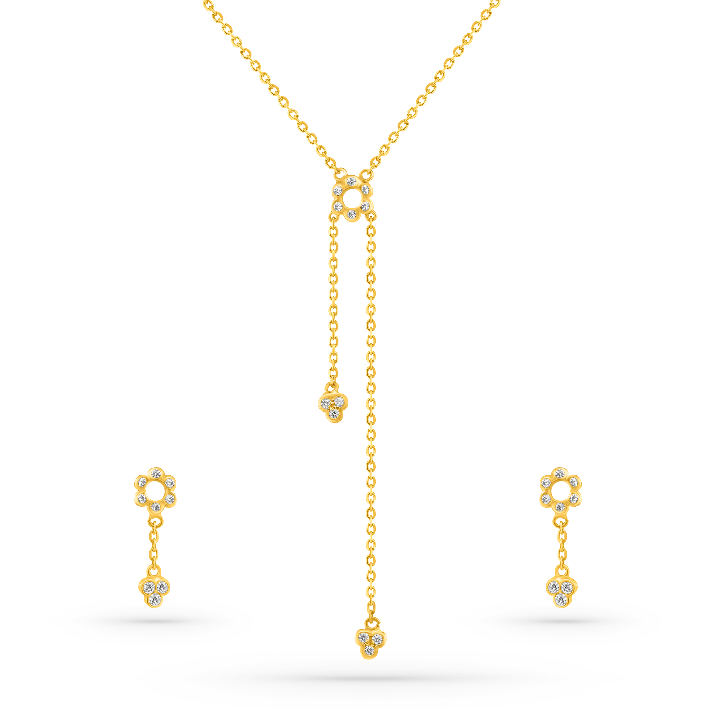 22K (916) gold necklace and earring set featuring exquisite craftsmanship and a radiant finish, combining timeless charm with modern elegance—perfect for festive occasions and special celebrations.