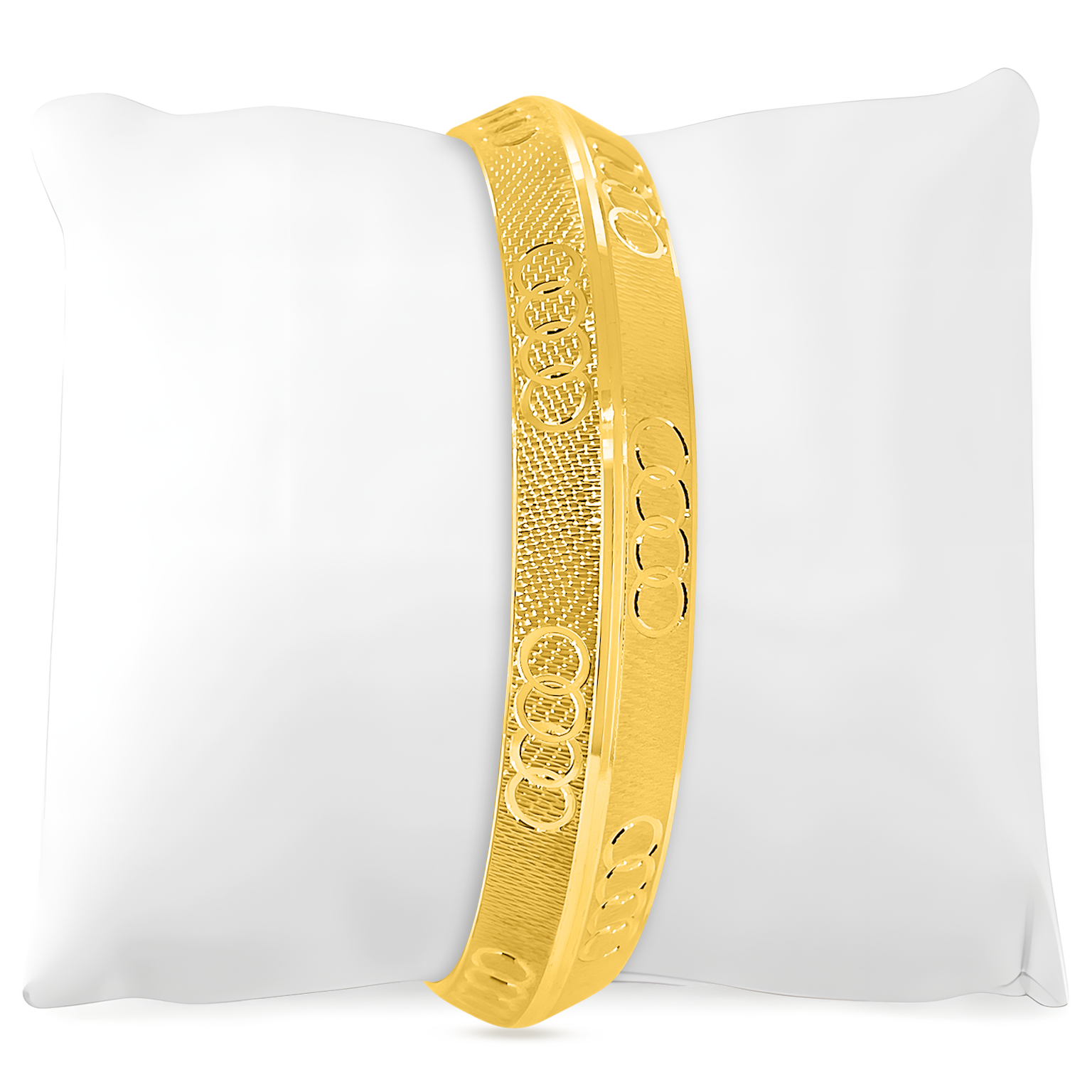 This sleek and modern kada features a smooth satin finish, accented by shiny circles. A perfect blend of subtle elegance and contemporary design, ideal for everyday wear.