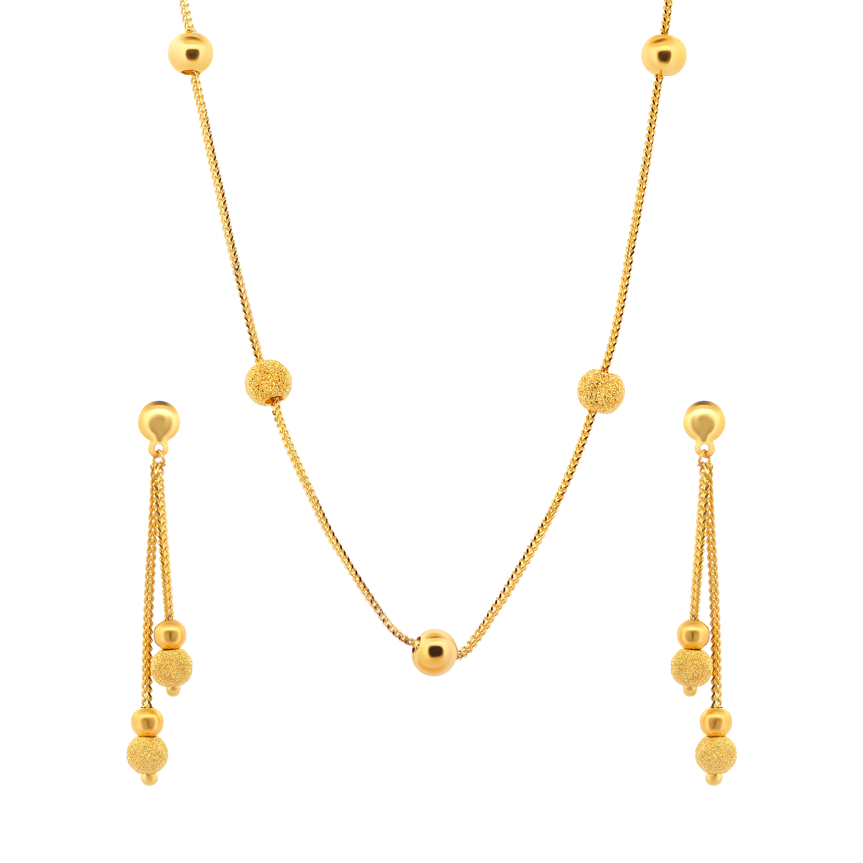 22K (916) gold necklace and earring set featuring exquisite craftsmanship and a radiant finish, combining timeless charm with modern elegance—perfect for festive occasions and special celebrations.
