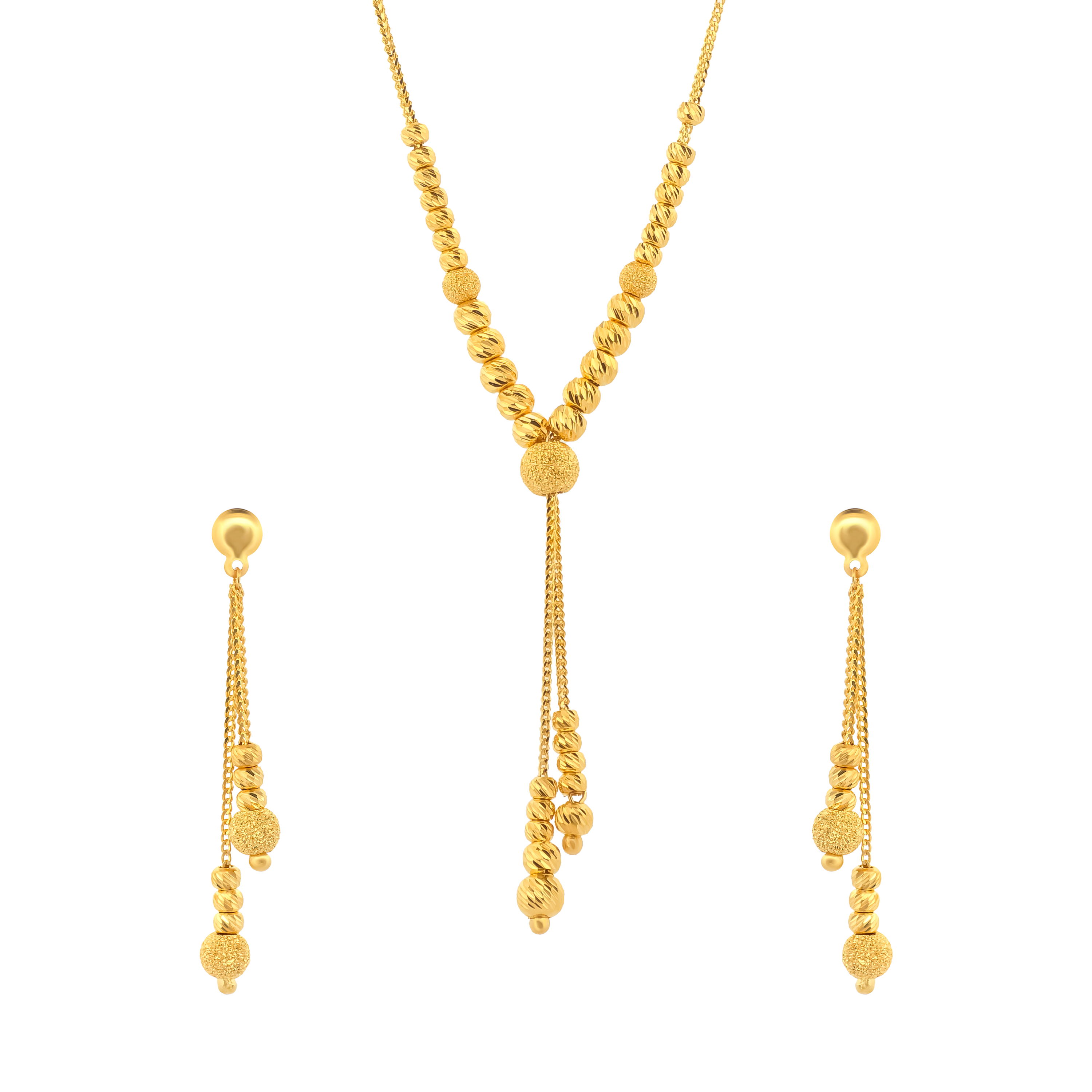 22K (916) gold necklace and earring set featuring exquisite craftsmanship and a radiant finish, combining timeless charm with modern elegance—perfect for festive occasions and special celebrations.
