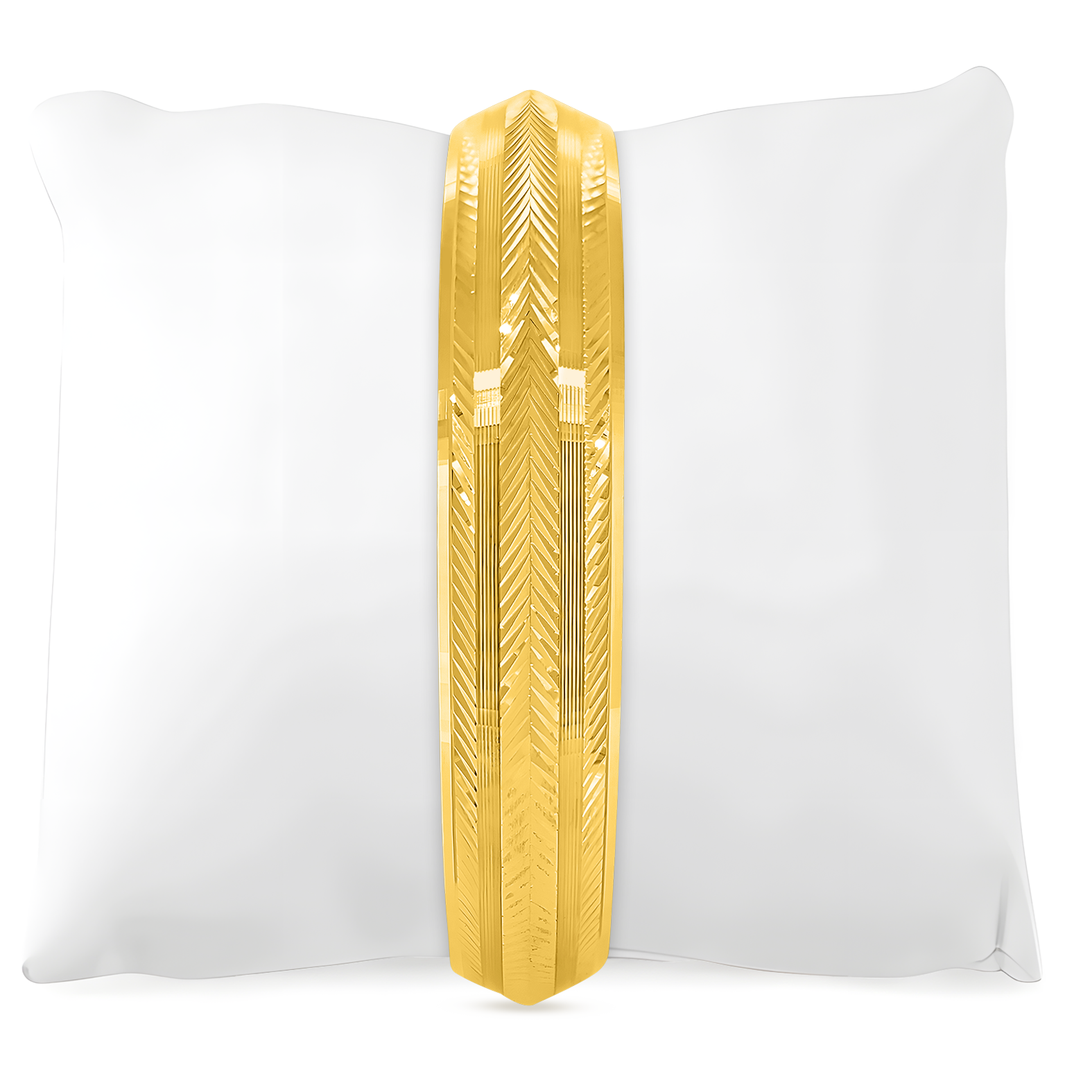 This sleek and modern kada features a minimalist V-pattern, offering a refined and understated design. Perfect for everyday wear or as a subtle statement piece. Customizable to your preferences
