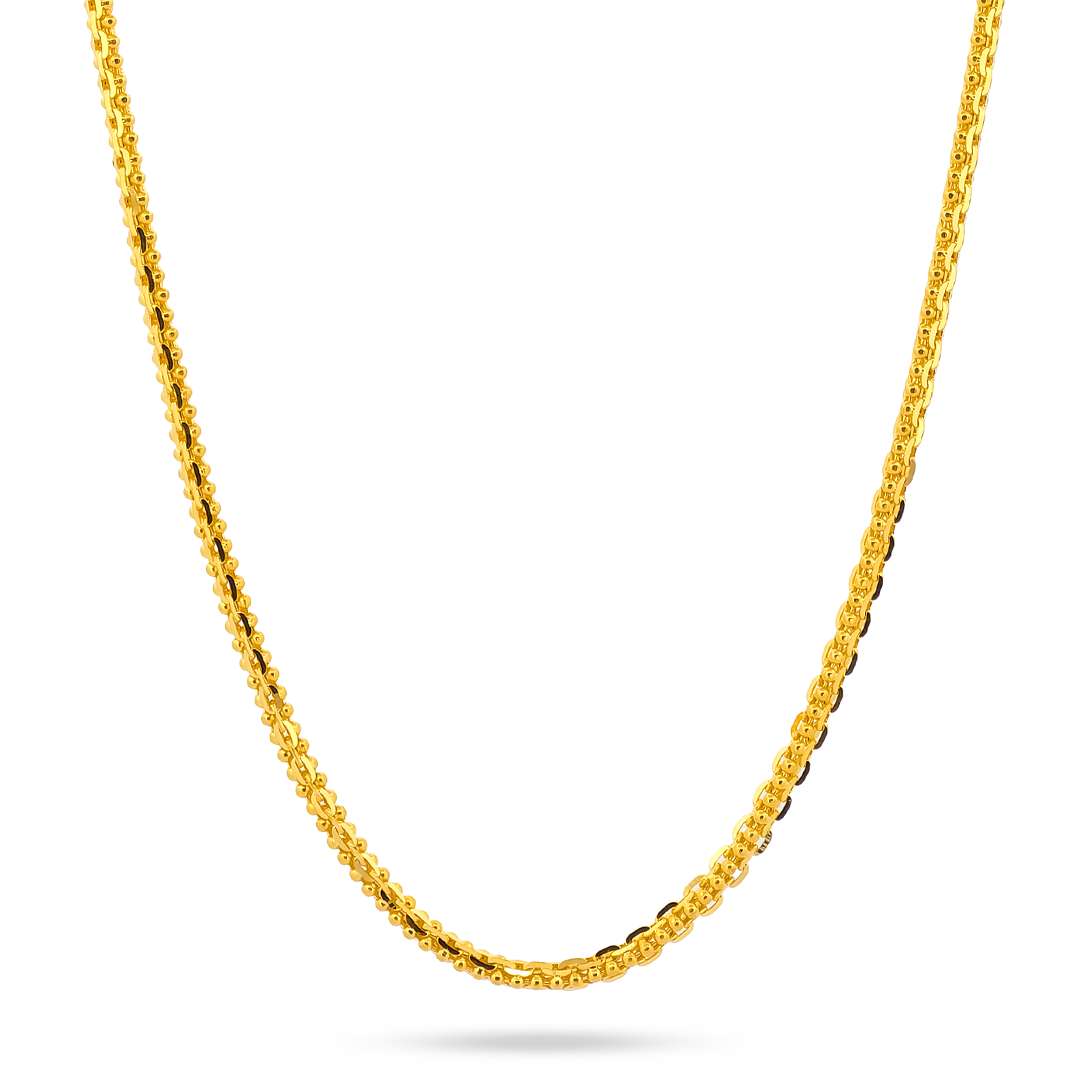 22K (916) gold cable dot chain showcasing a timeless link pattern accented with delicate dotted details — a perfect blend of simplicity and sophistication for daily elegance.