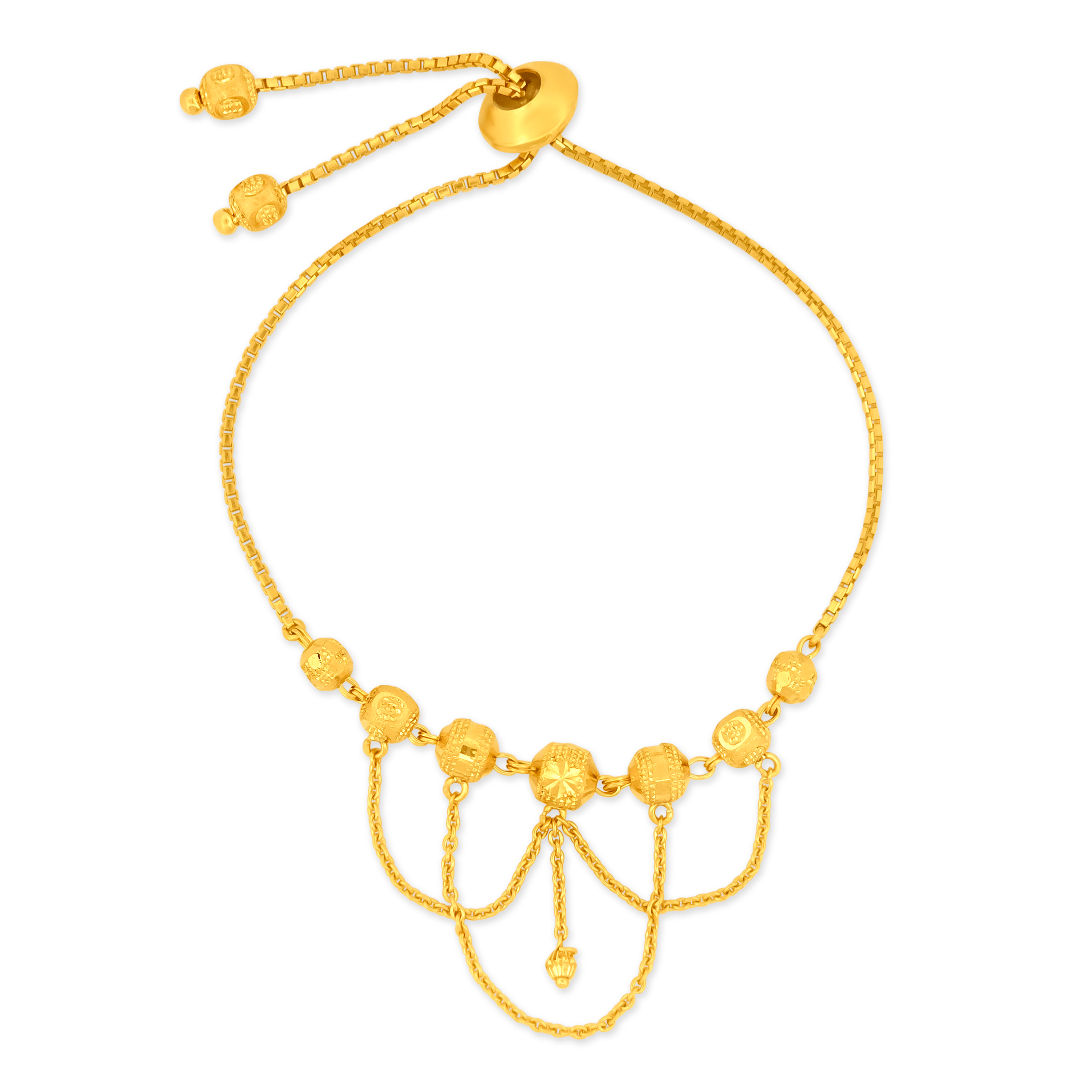 This exquisite gold bracelet showcases a stunning arrangement of finely textured gold beads connected by a sleek box chain.
