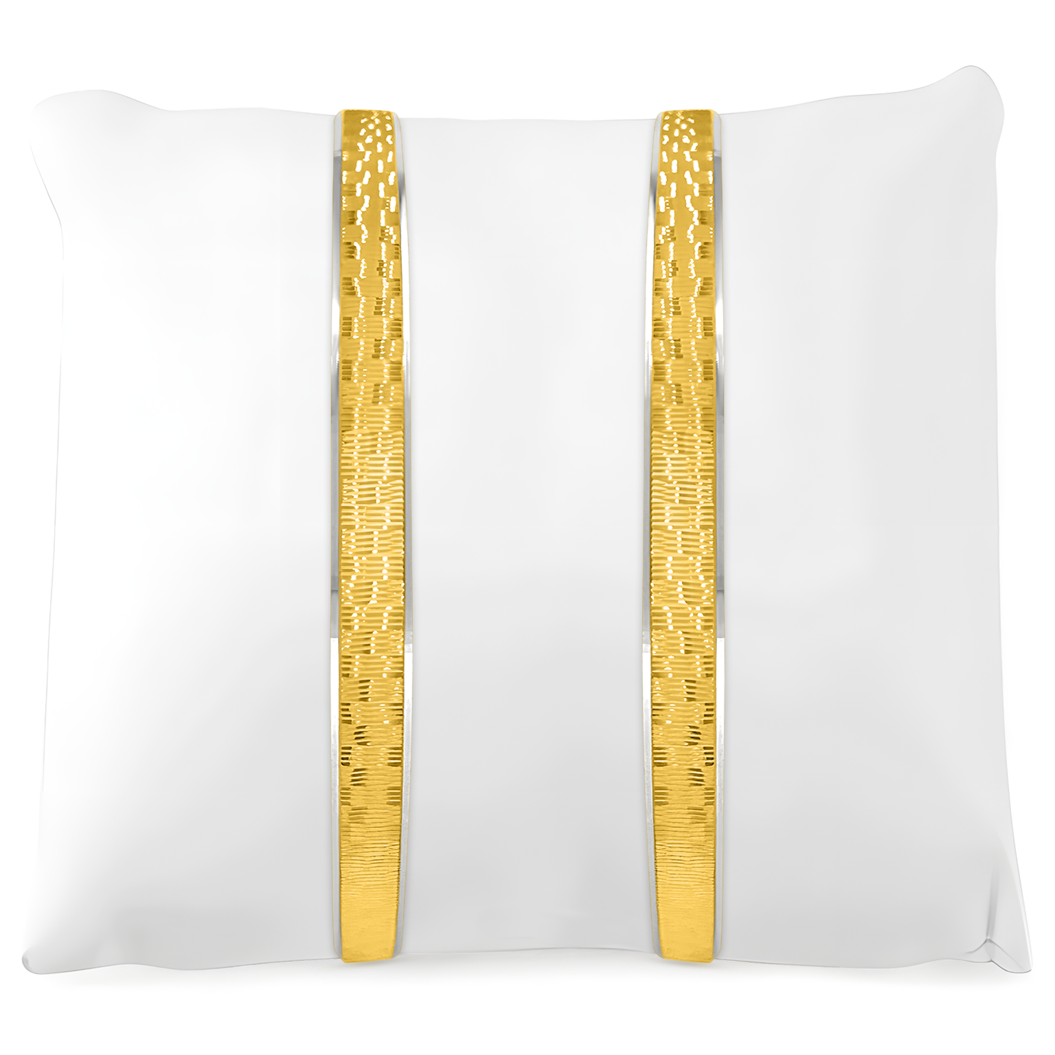 22K (916) gold bangles, set of two, available in classic all-gold. The design features a sleek frosted finish, offering a subtle yet stylish look. These thin bangles can be layered to create a personalized, elegant statement. Available in various sizes, they are perfect for adding a touch of sophistication to your everyday or special occasion ensemble.