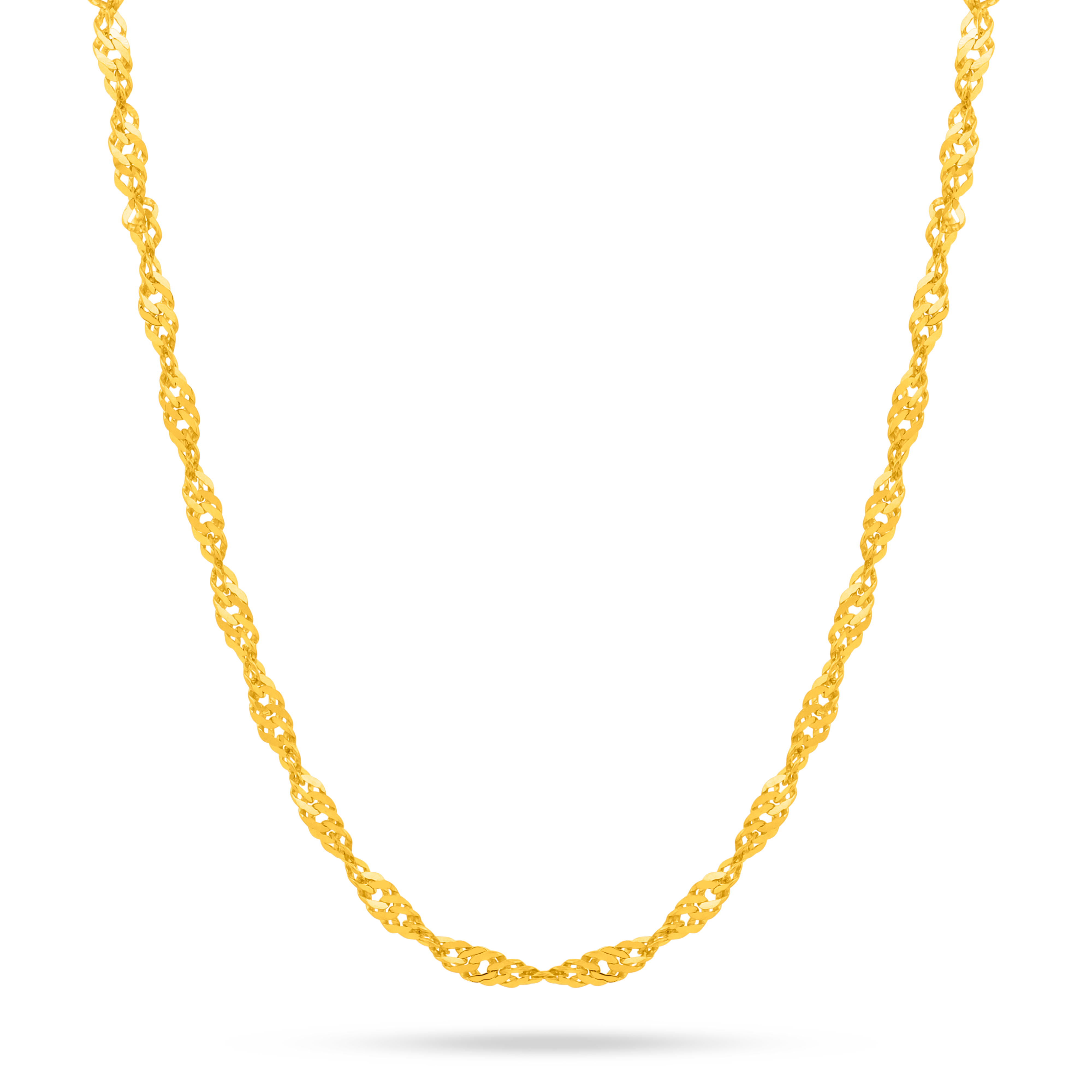 Elevate your everyday style with this twisted disco gold chain, featuring a textured, interwoven design that offers a brilliant shine and timeless appeal.