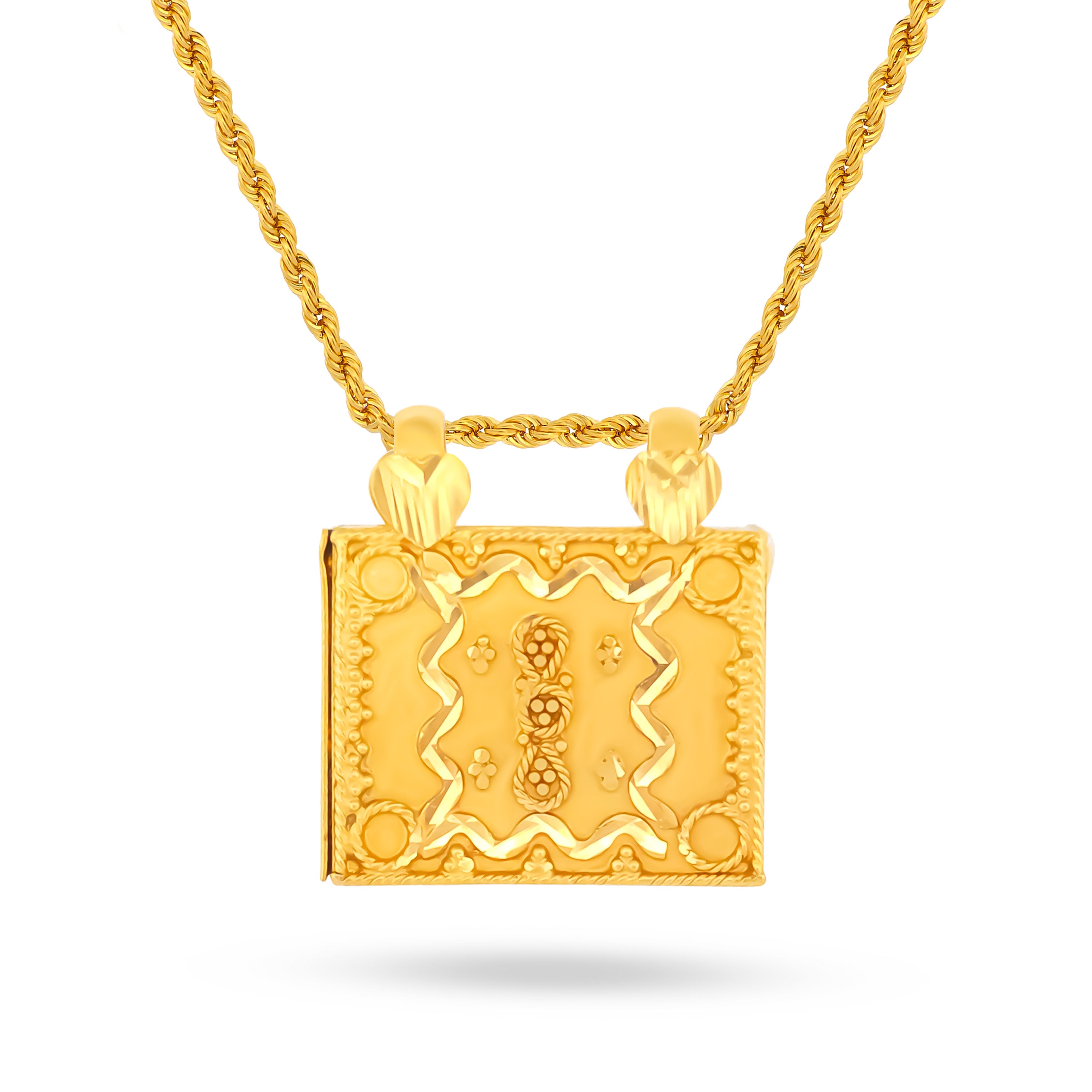 This exquisite gold locket features a rectangular design with intricate handcrafted detailing, reflecting traditional artistry.