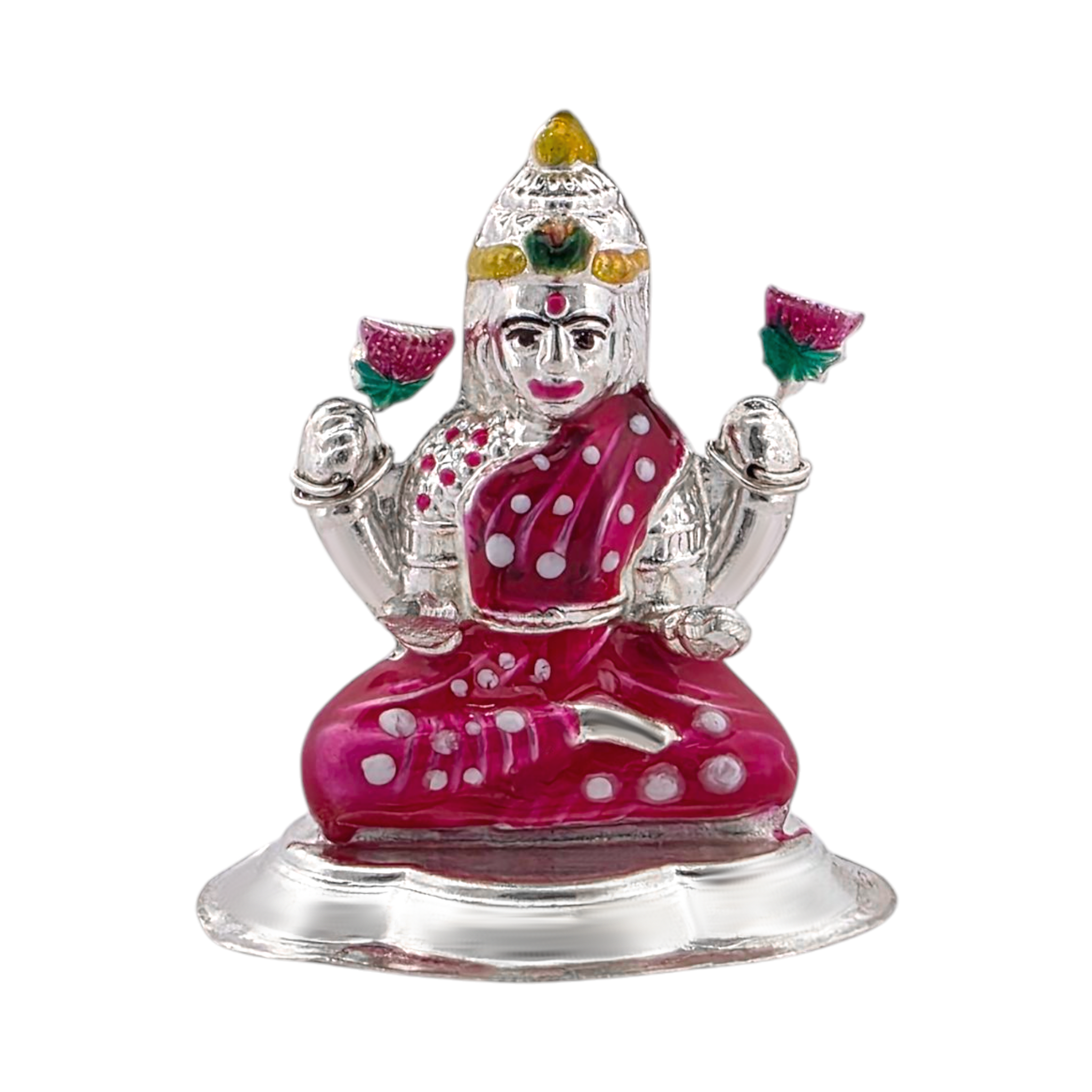 This elegant 925 silver statue features Goddess Lakshmi, the Hindu deity of wealth, prosperity, and fortune, seated in a traditional posture.