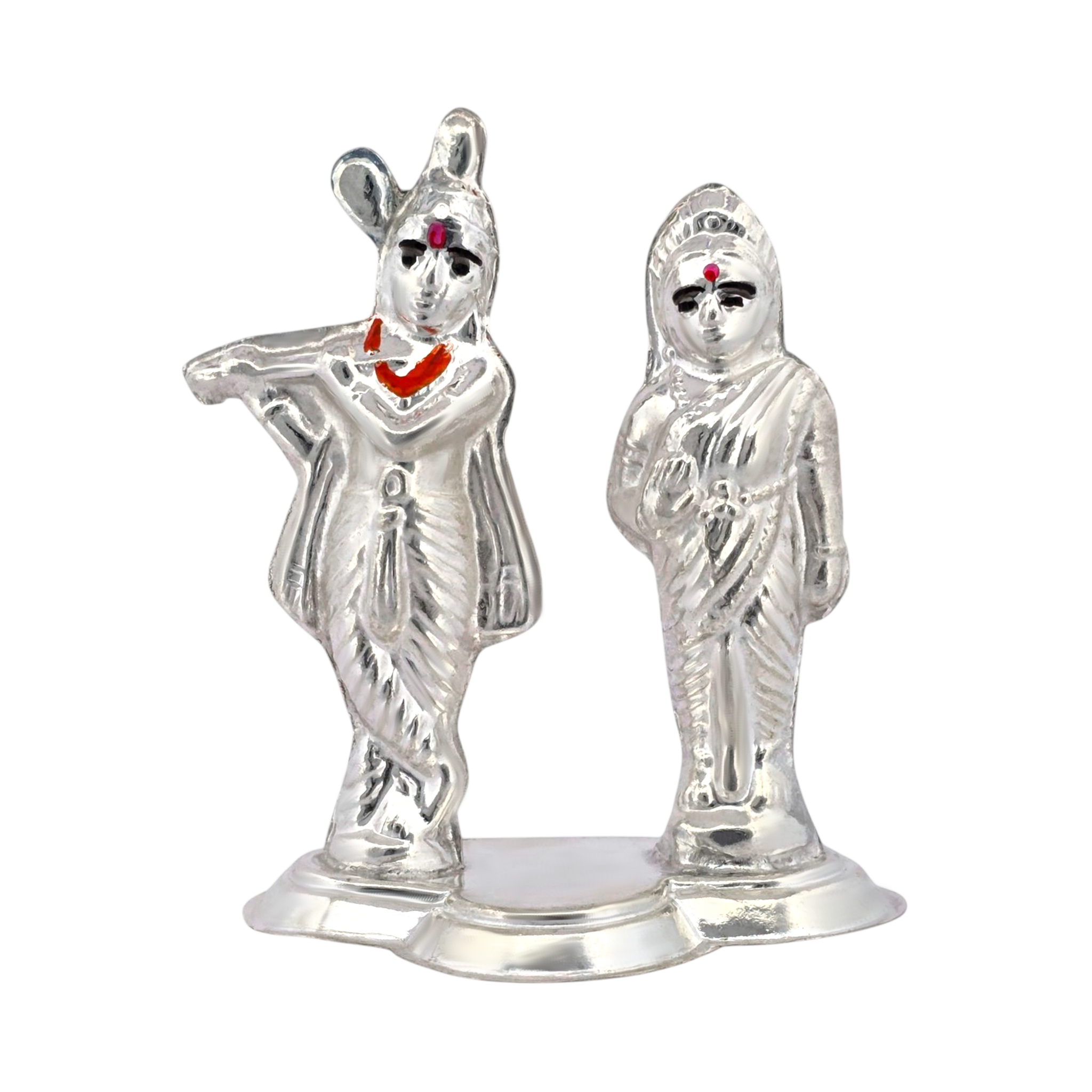 925 Silver Radha Krishna idol symbolizing eternal love and harmony, with Krishna on the flute and Radha gracefully by his side—perfect for devotion or gifting.