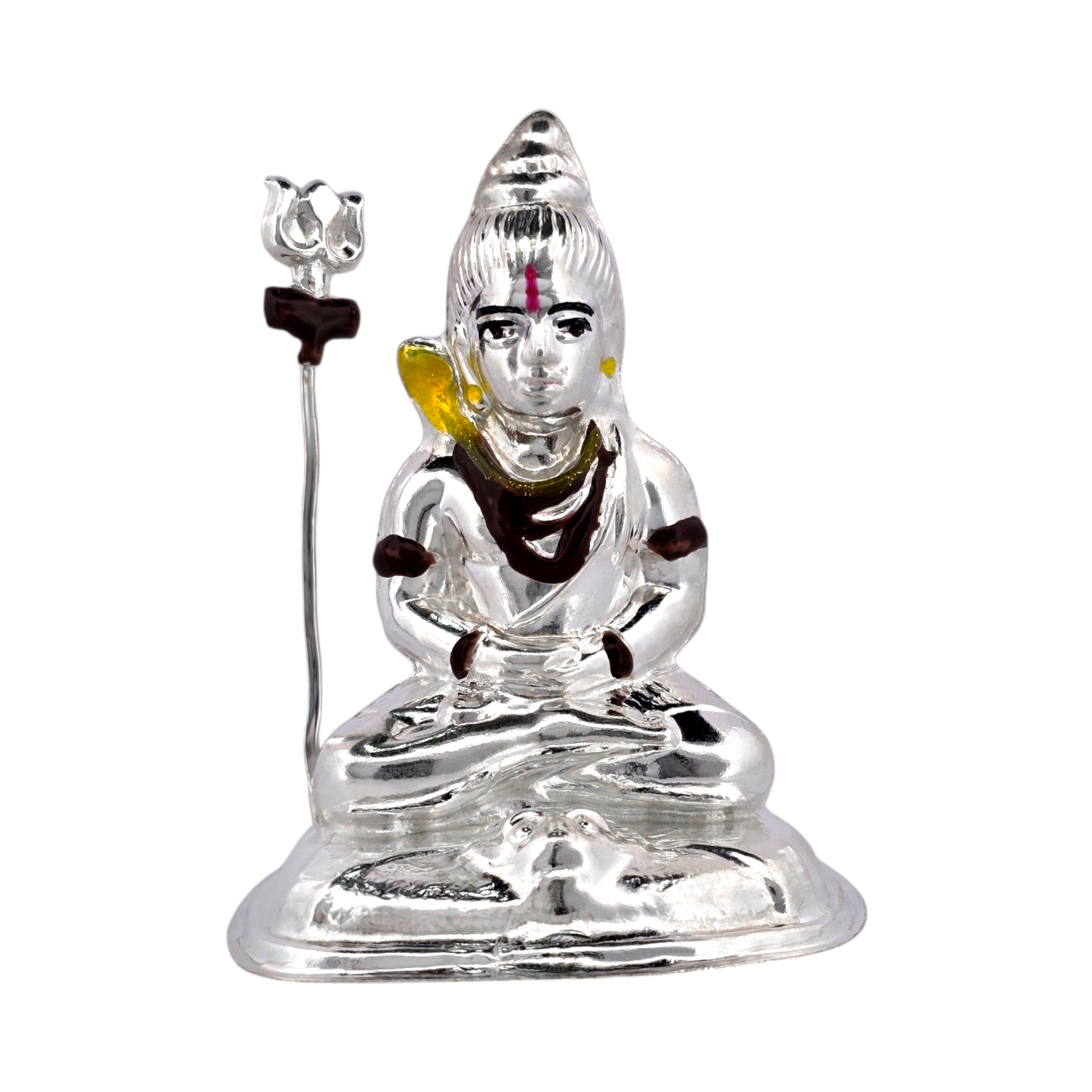 This finely crafted 925 silver murti depicts Lord Shiva, the supreme ascetic and destroyer of evil in Hindu tradition.