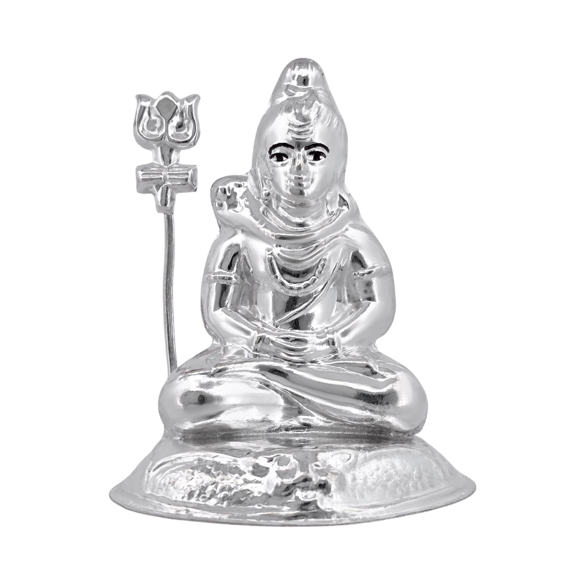 Invoke the cosmic power of Lord Shiva with this 925 silver idol, featuring Him in deep meditation beside His sacred Trishul.