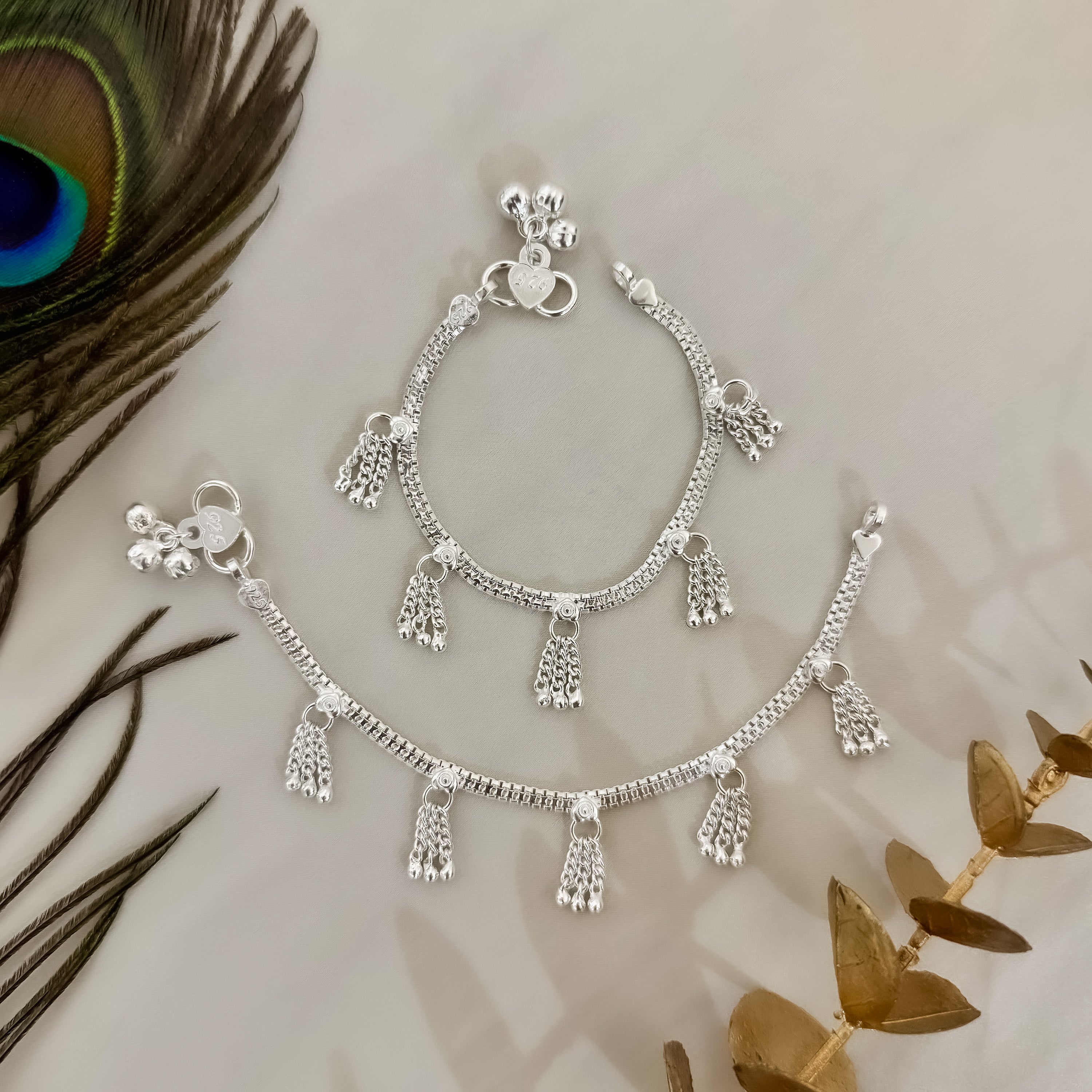 delicate dangling chain charms adorned with jingling ghungroos for a playful, musical effect.