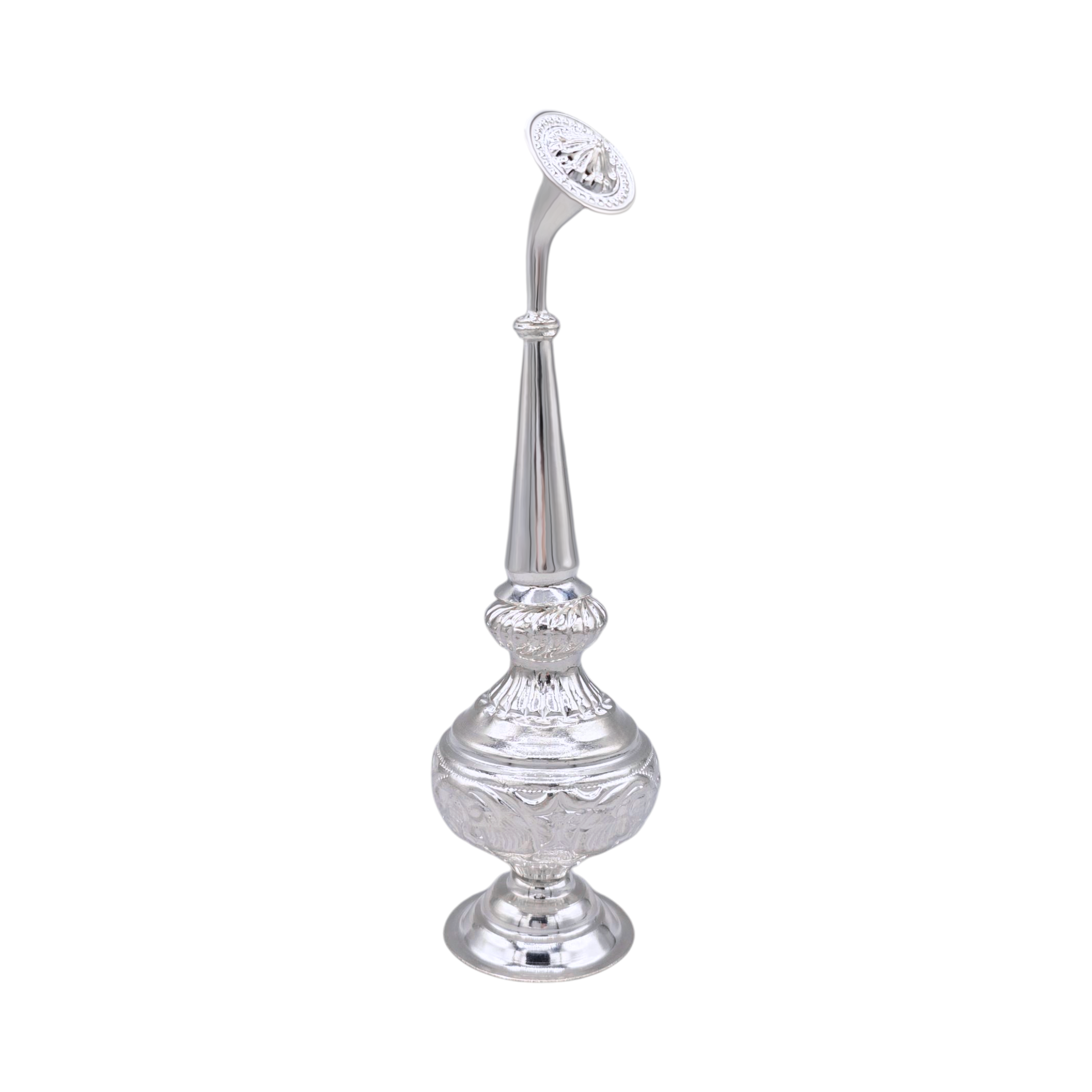 Graceful 925 silver rose water sprinkler (Gulab Pash) with a tall, slender neck and ornate floral detailing.