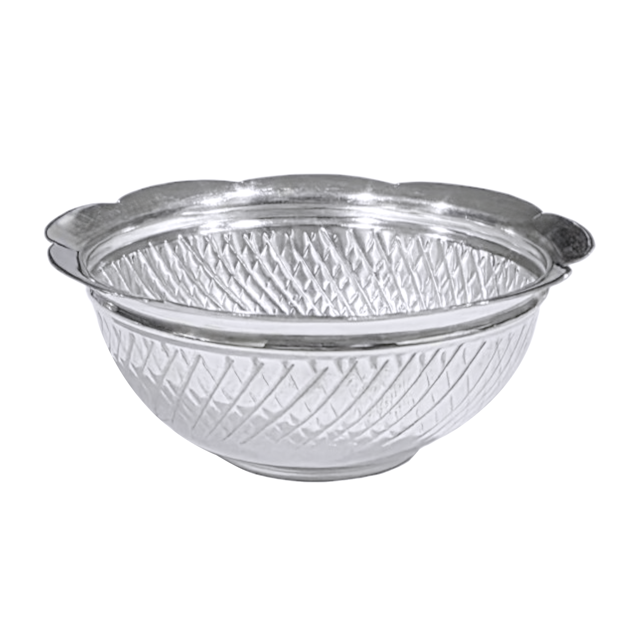925 Silver bowl that features a textured diamond-cut pattern and scalloped rim, combining elegance with functionality—ideal for pooja rituals, offerings, or festive gifting.