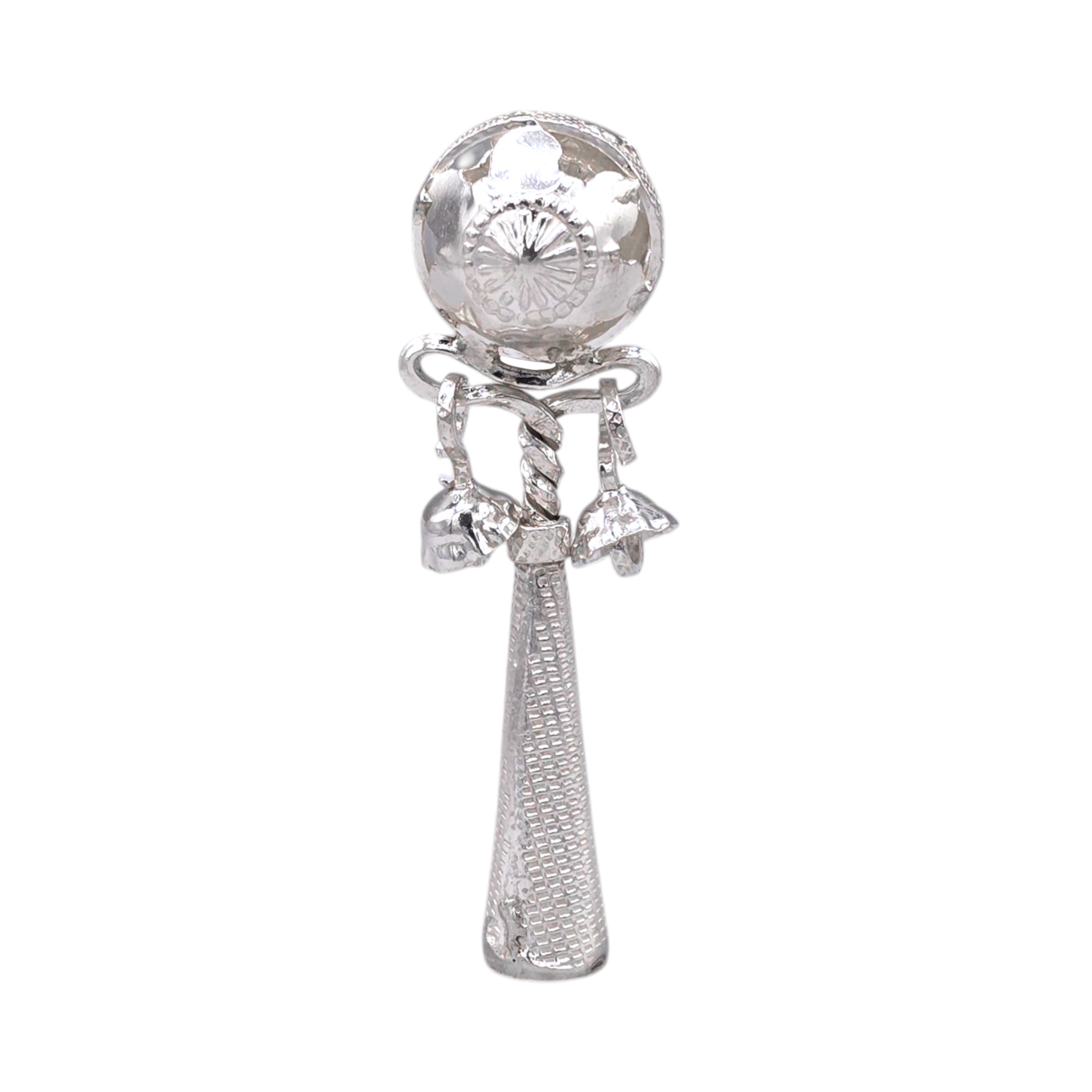 This handcrafted 925 silver baby rattle, also known as a traditional ghungroo rattle, is a beautiful blend of cultural heritage and functional design.