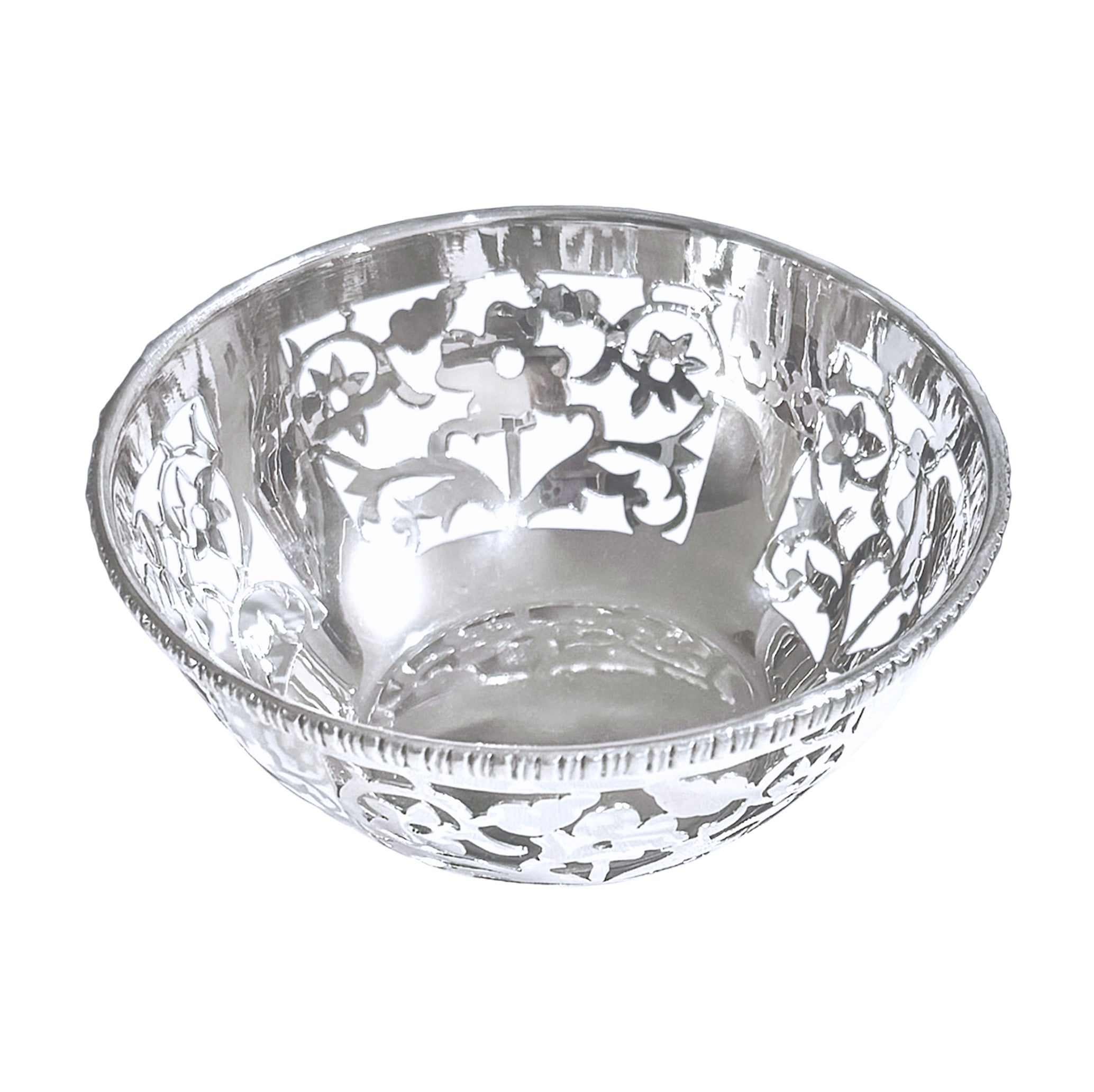 925 silver bowl crafted in a delicate floral-inspired silhouette, featuring a high-polish finish and intricate detailing along the rim—perfect for serving offerings or displaying as a refined accent piece.