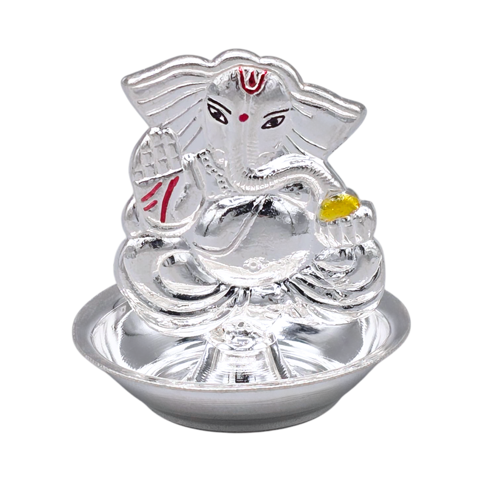 Beautifully crafted 925 silver incense (dhoop) holder featuring Lord Ganesha with detailed red and yellow enamel accents