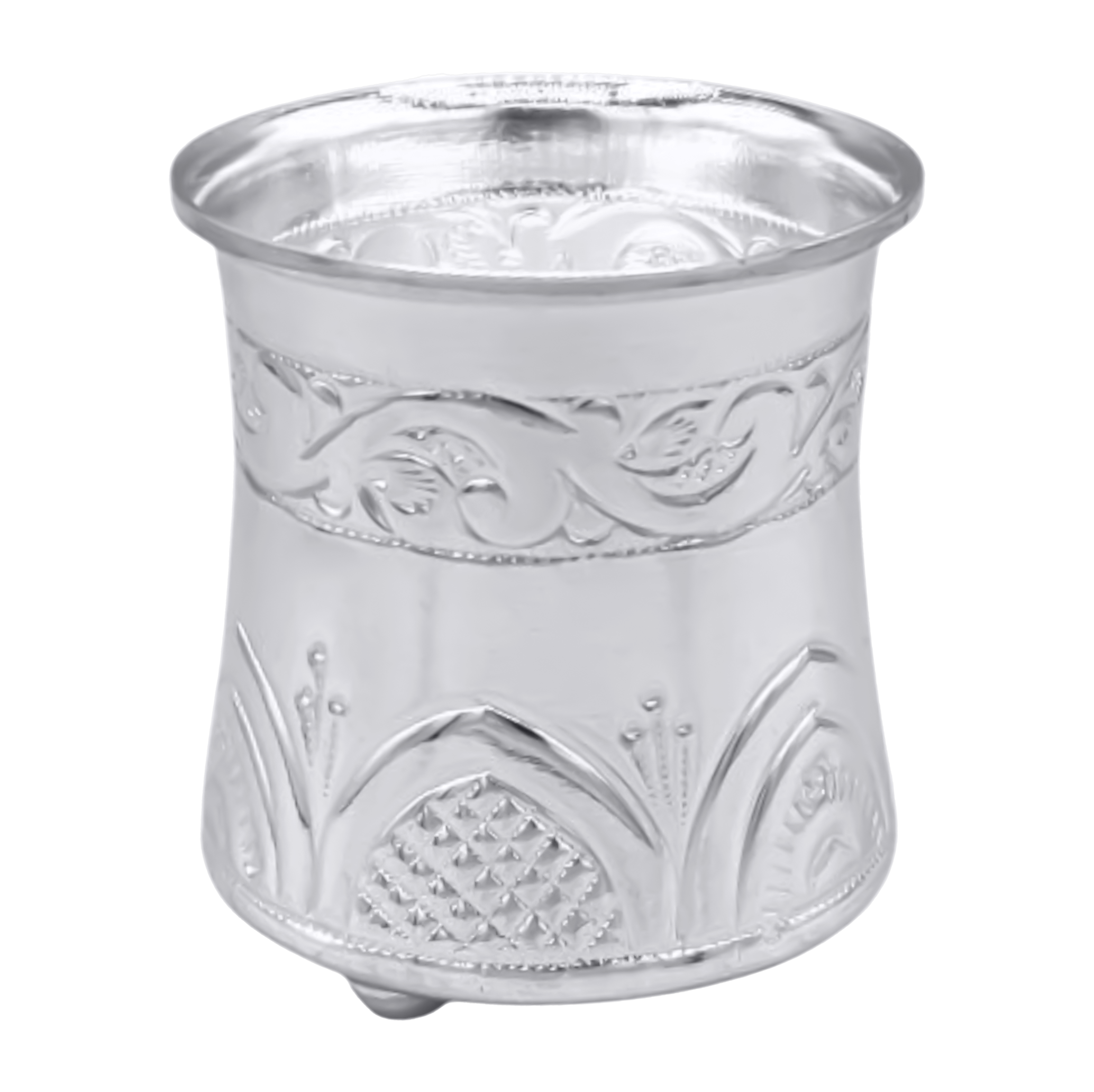 This pure 925 silver Panchpatra (charan amrit bowl) is a sacred pooja essential used to hold holy water during rituals. A thoughtful gift for occasions like Diwali, weddings, housewarmings, and naming ceremonies.