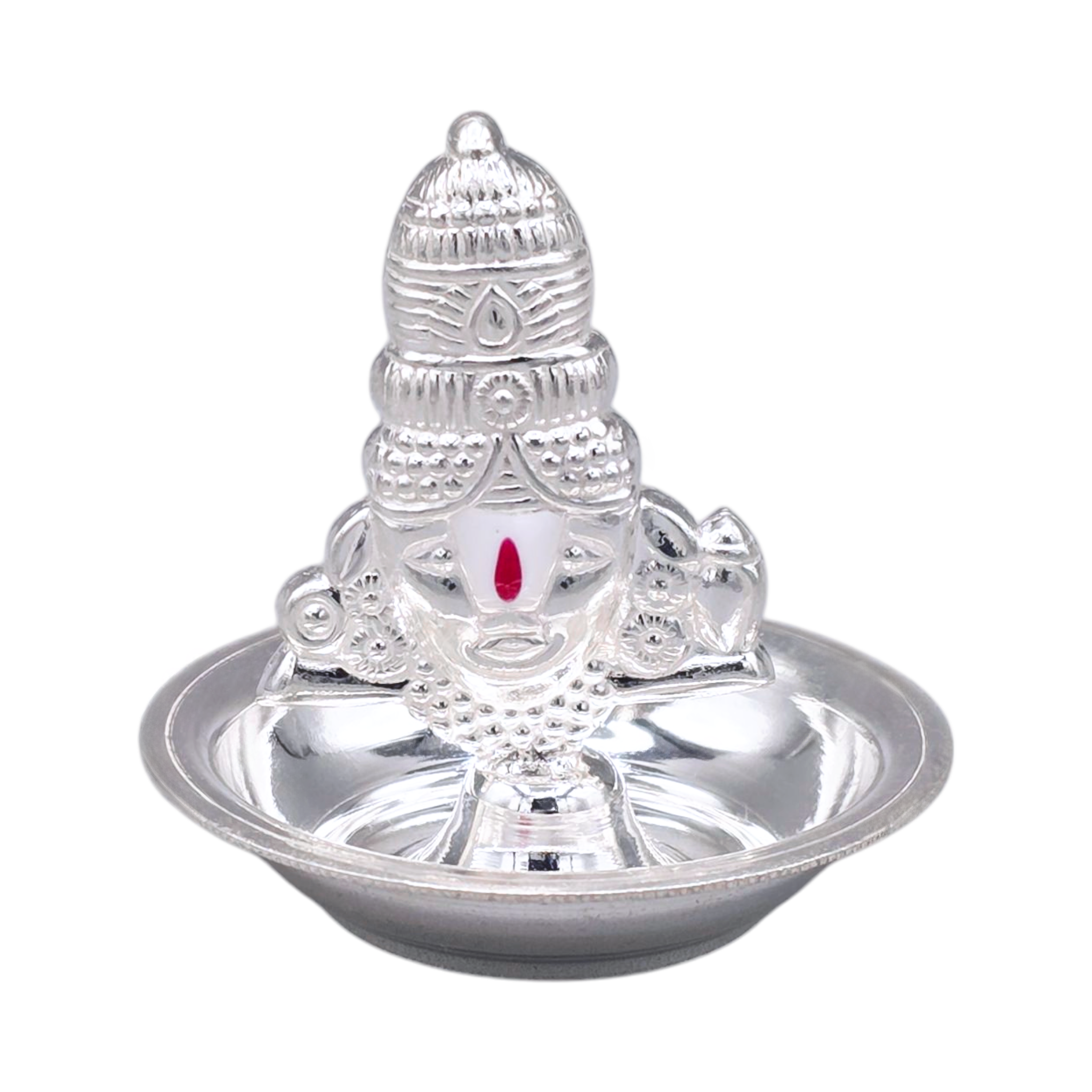 925 Silver incense (dhoop) holder featuring Lord Balaji's divine face with red and white enamel detailing — spiritual décor.