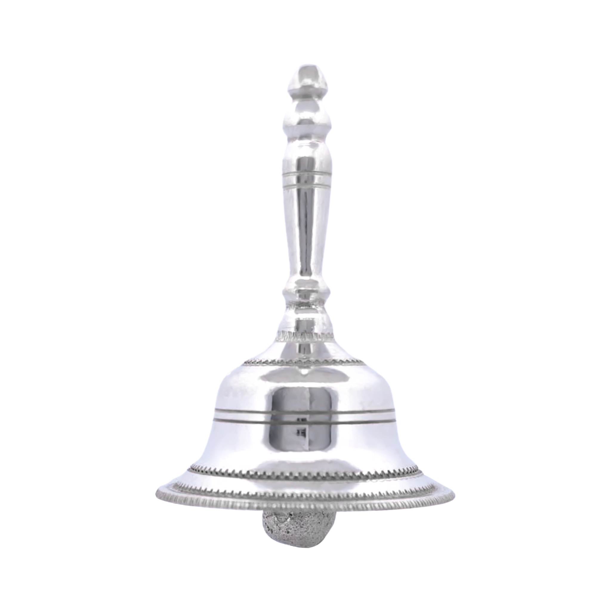 This elegant 925 silver handheld bell features a polished finish and a classic design with a finely detailed handle.