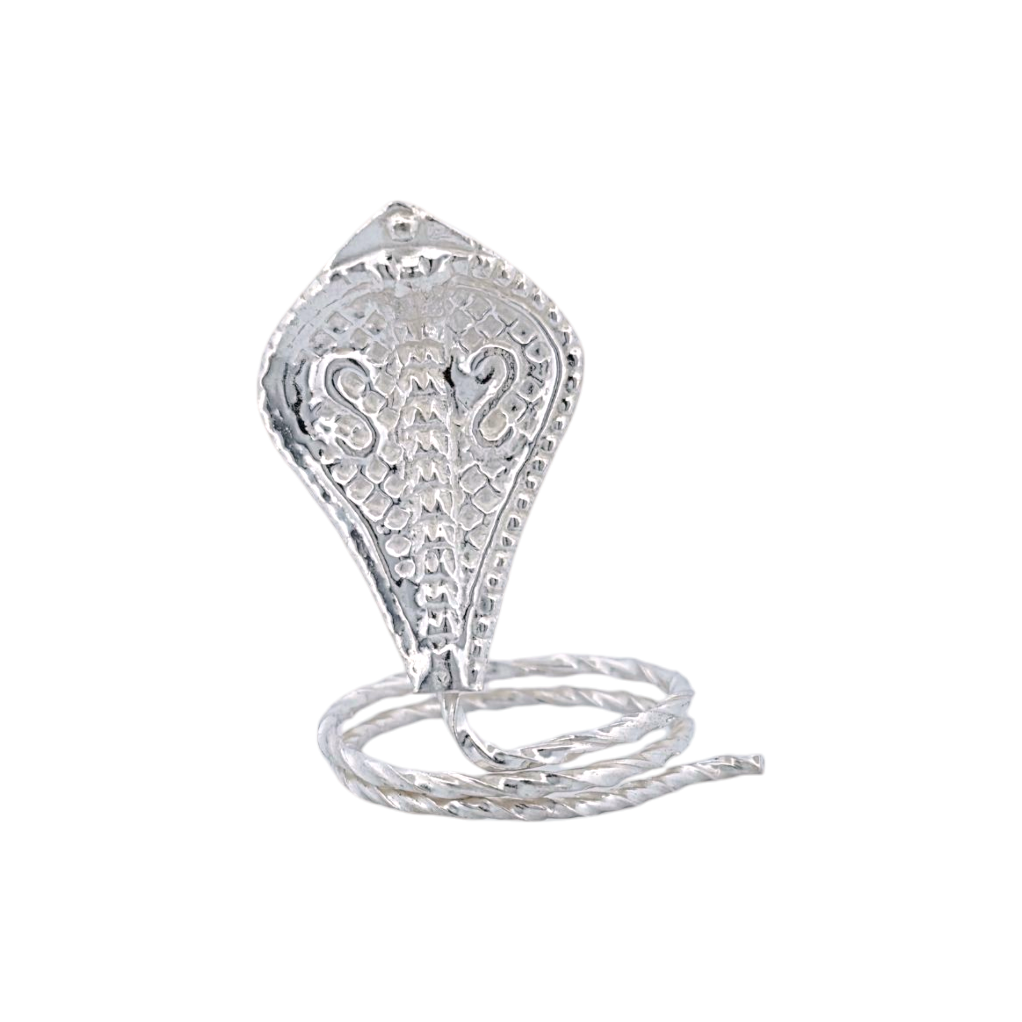 This compact and artistically crafted 925 silver Naga idol features a coiled serpent with a beautifully engraved hood and striking detailing on its body.